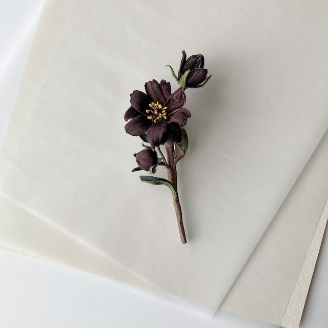 2025-26AW collection「Calm」 色が豊富なコスモスの中でも大人な印象のチョコレートコスモス。シックな色合いと愛らしい姿で、どんな装いにも自然と馴染むブローチです。 素材:キュプラ、レーヨン、綿 金具:コサージュピン サイズ:約9×4㎝ 『Calm』 2025-26AW collection 過ごした日々を振り返る。一瞬の美しさも切なさも全て愛おしむように。 洗練されたフォルムと落ち着きのあるトーンで日々を穏やかに彩るAW collection ※商品写真は出来るだけ実物の色に近くなるよう努めておりますが、撮影環境、お使いのブラウザ等環境により見え方が若干異なる場合がございます。予めご了承ください。