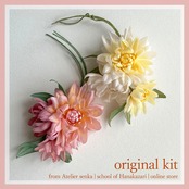 アトリエ染花花飾り教室が企画するオリジナルキットです。アトリエ染花独自の染色を施した材料と作り方をセットにしてご自宅にお届けいたします。ご自身のペースでお気軽に本格的なお花づくりをお楽しみください。