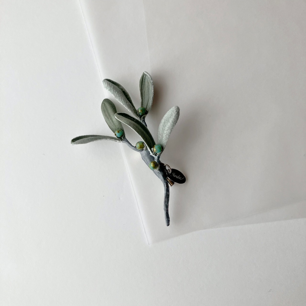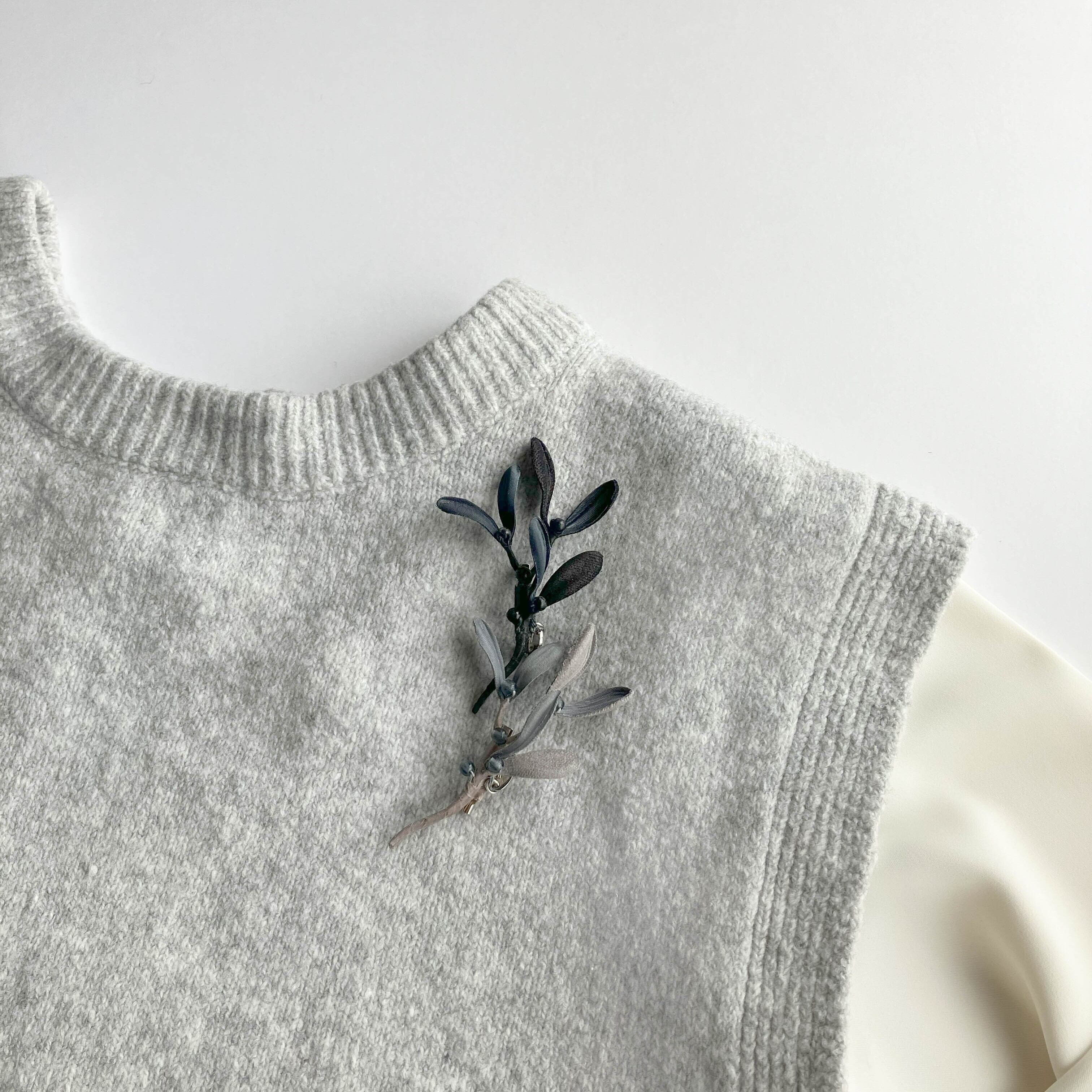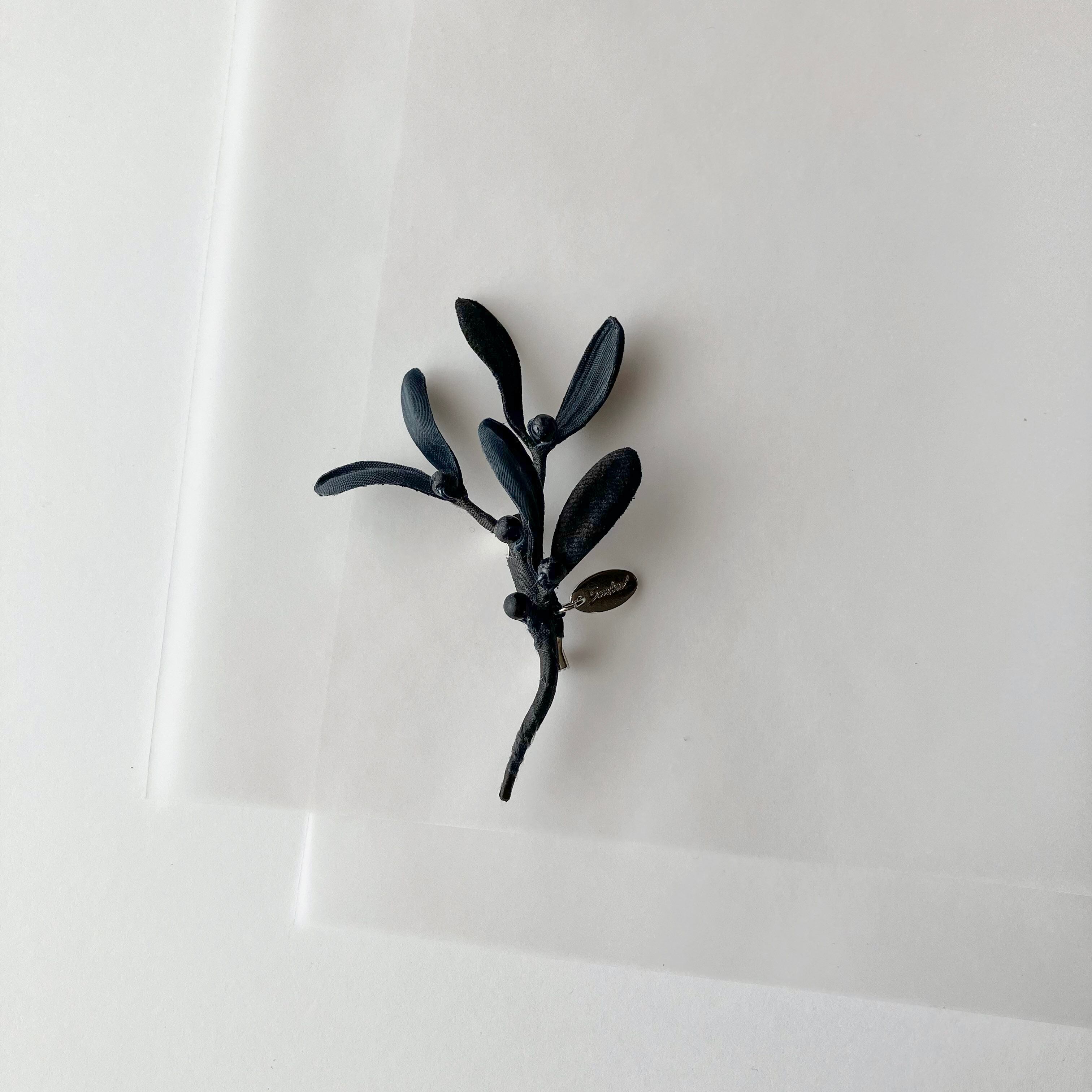 幸福をもたらすとも言われるヤドリギをスタイリッシュなブローチに。シンプルだからこそ季節問わずどんな装いにもそっと寄り添います。小さなワンポイントにおすすめのミニサイズ。