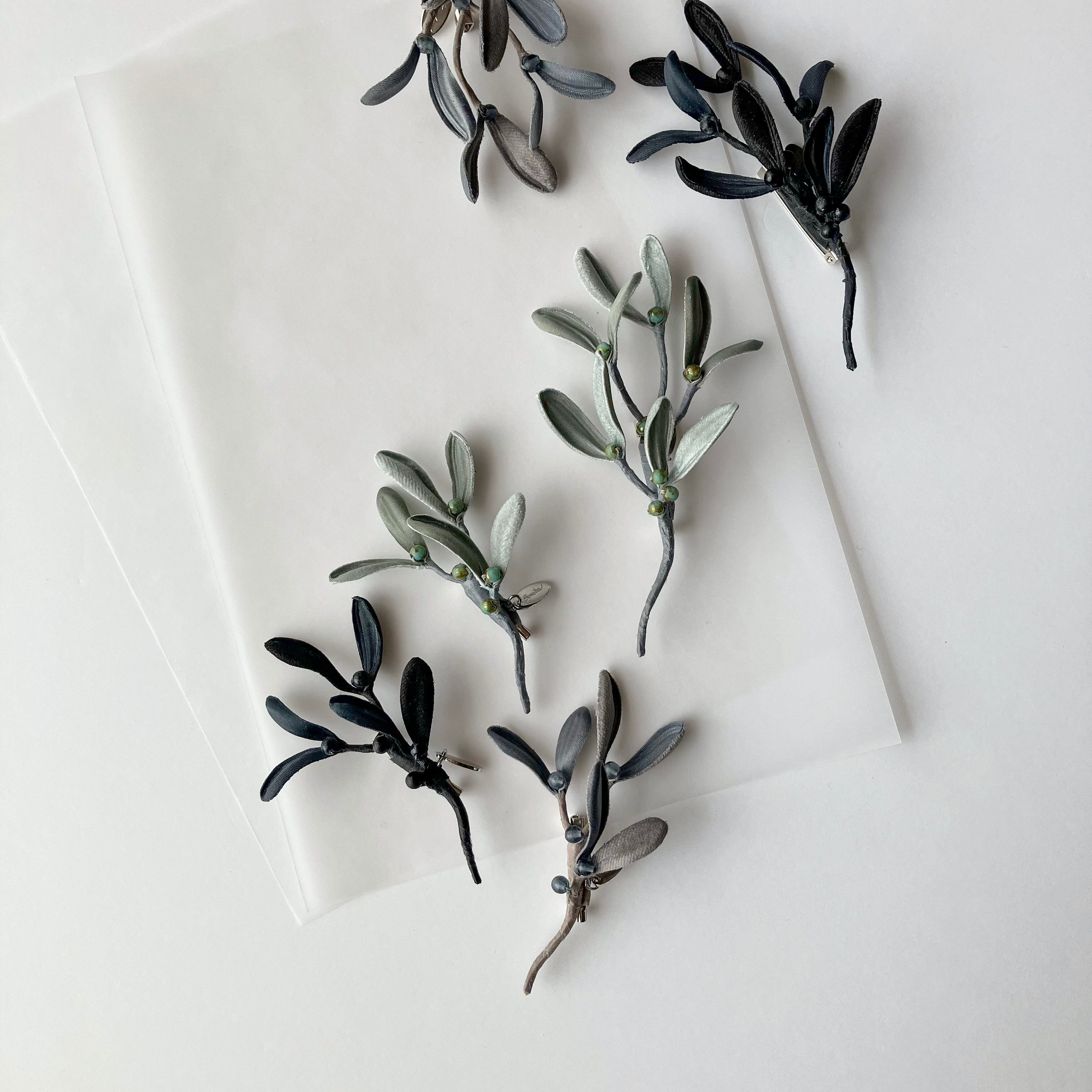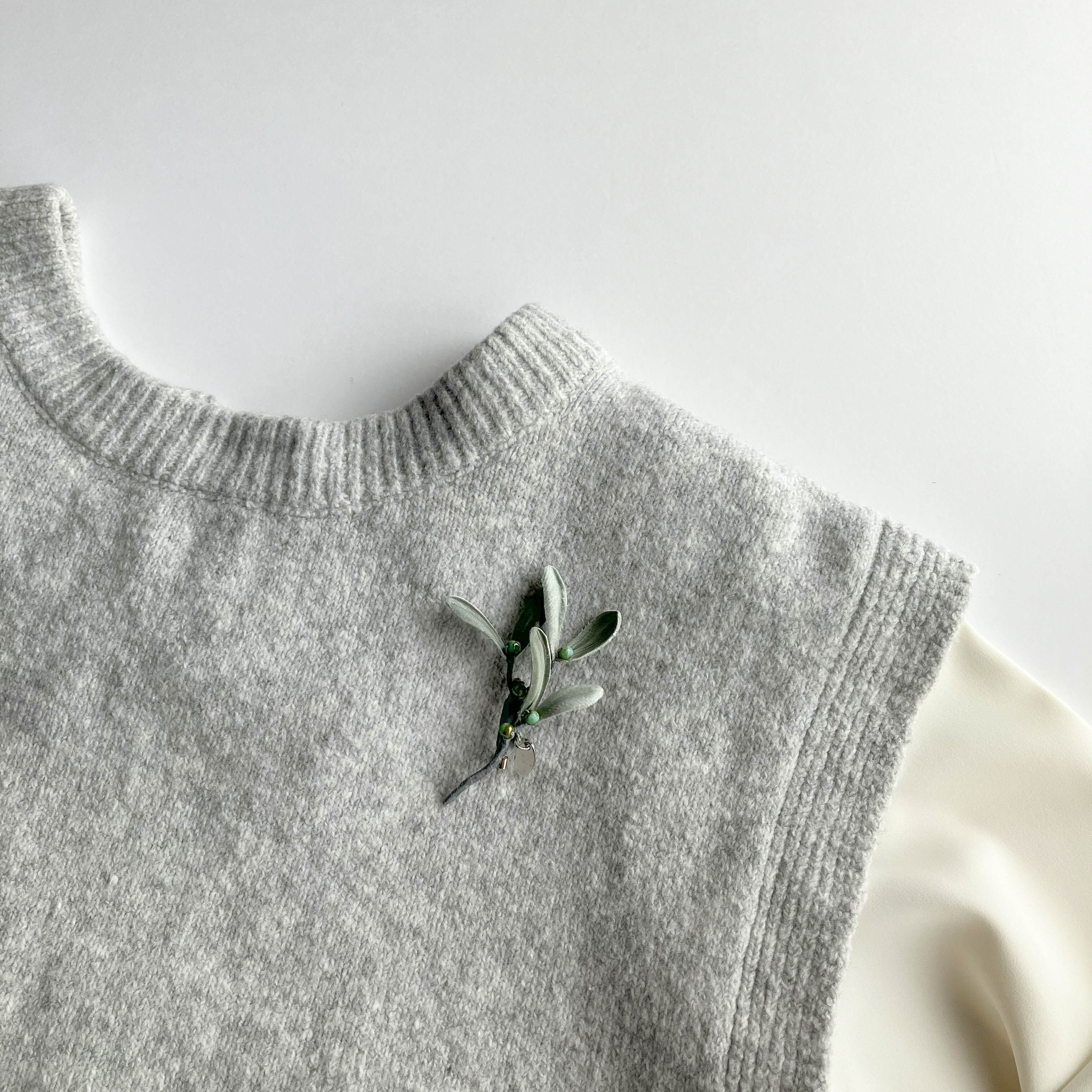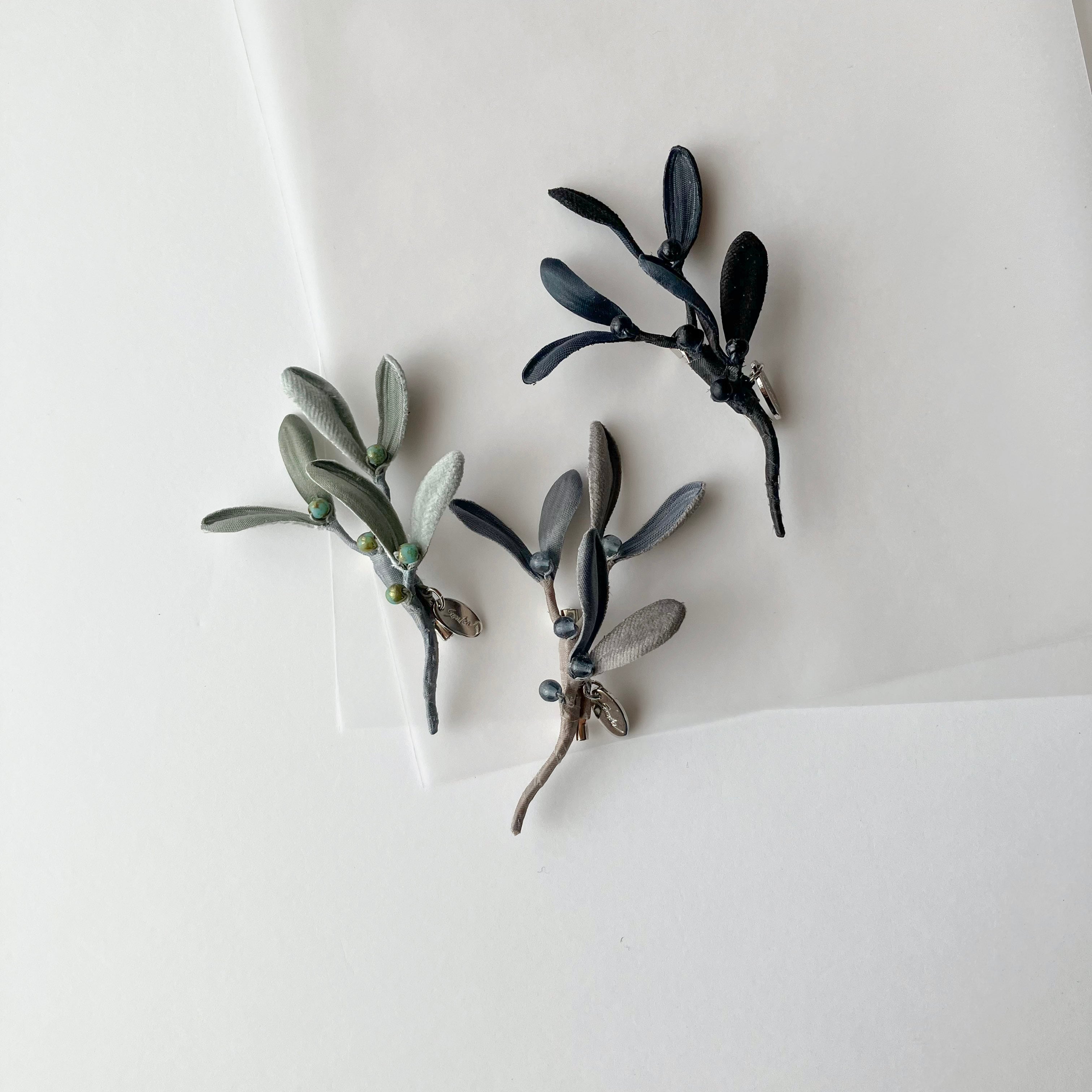 幸福をもたらすとも言われるヤドリギをスタイリッシュなブローチに。シンプルだからこそ季節問わずどんな装いにもそっと寄り添います。小さなワンポイントにおすすめのミニサイズ。