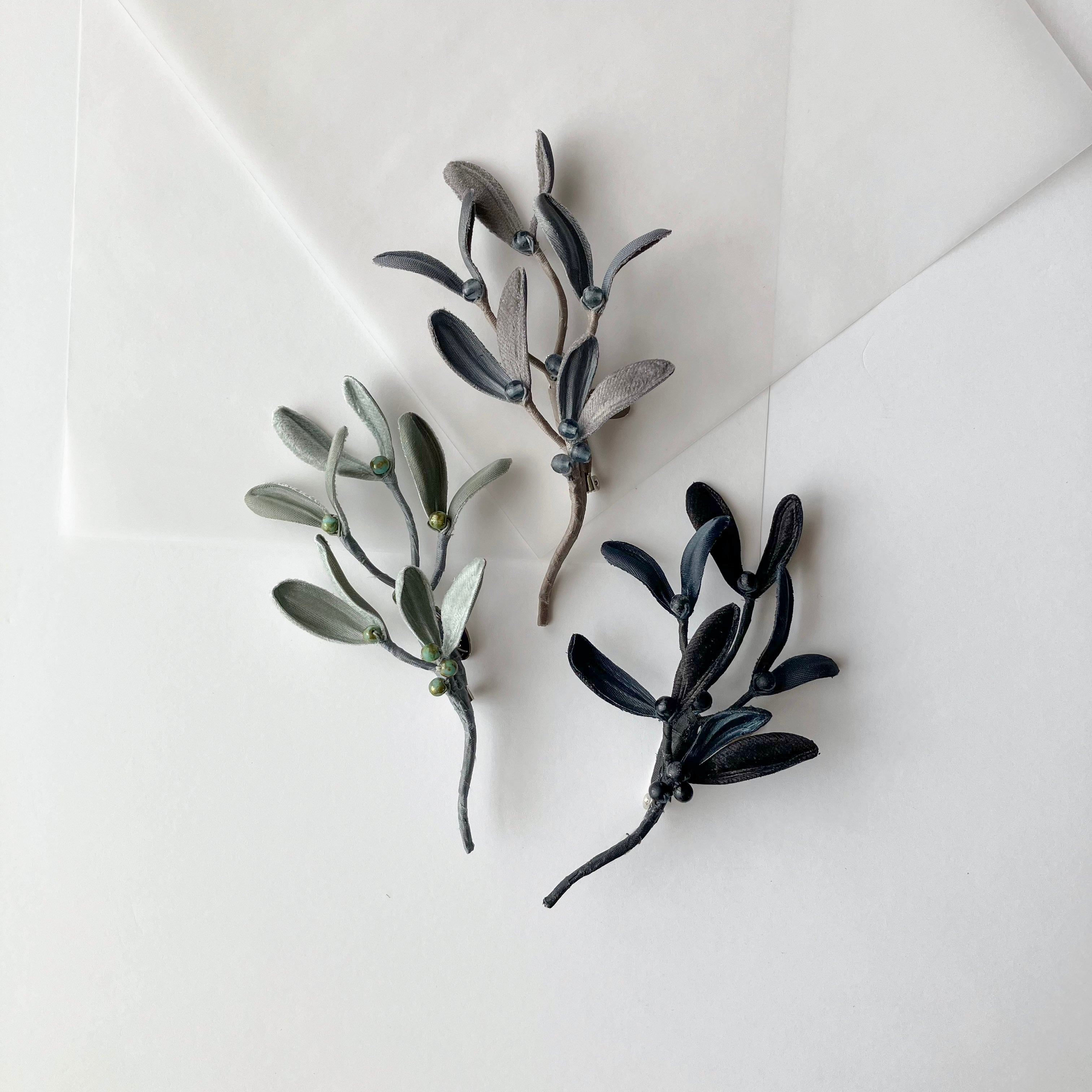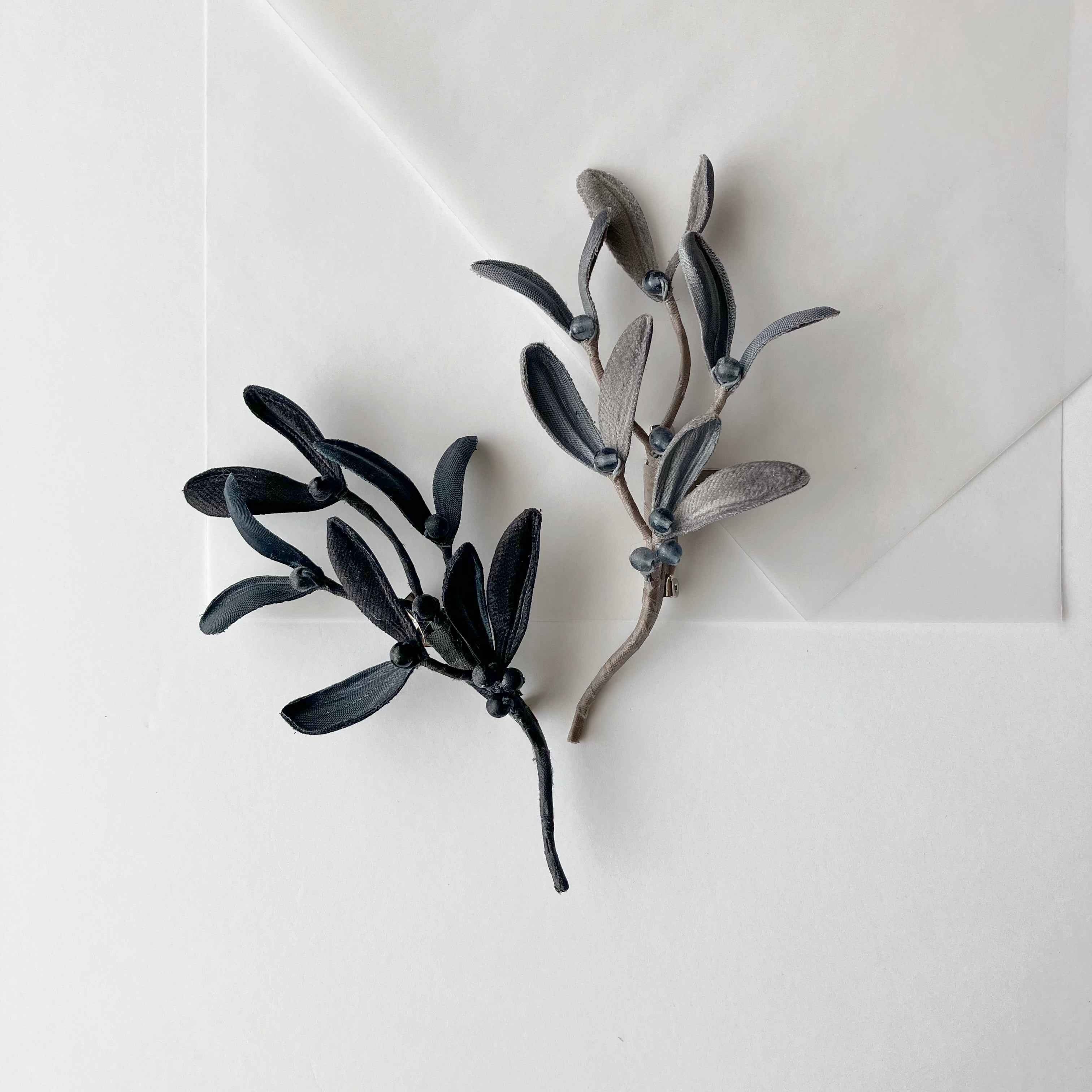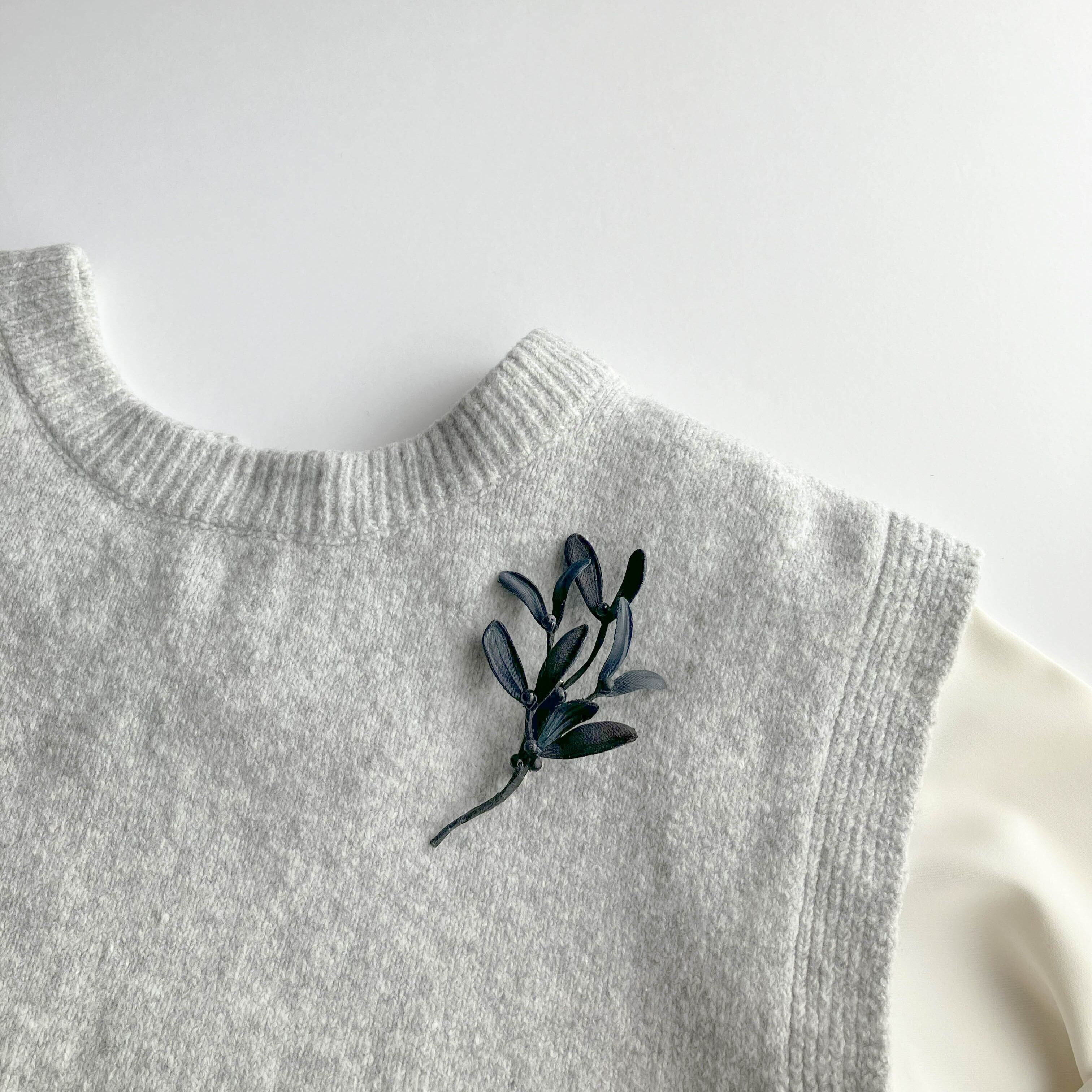 幸福をもたらすとも言われるヤドリギをスタイリッシュなブローチに。シンプルだからこそ季節問わずどんな装いにもそっと寄り添います。
