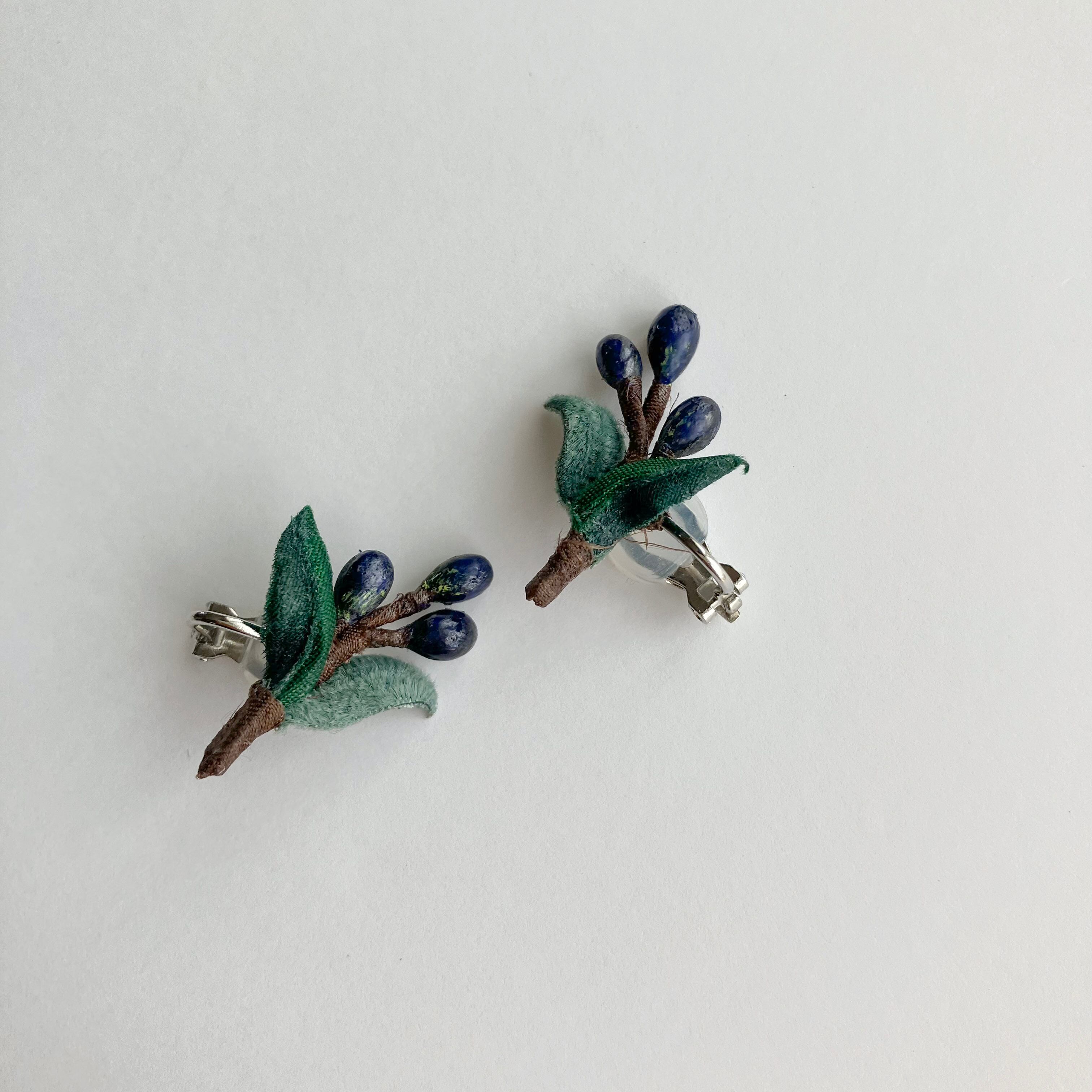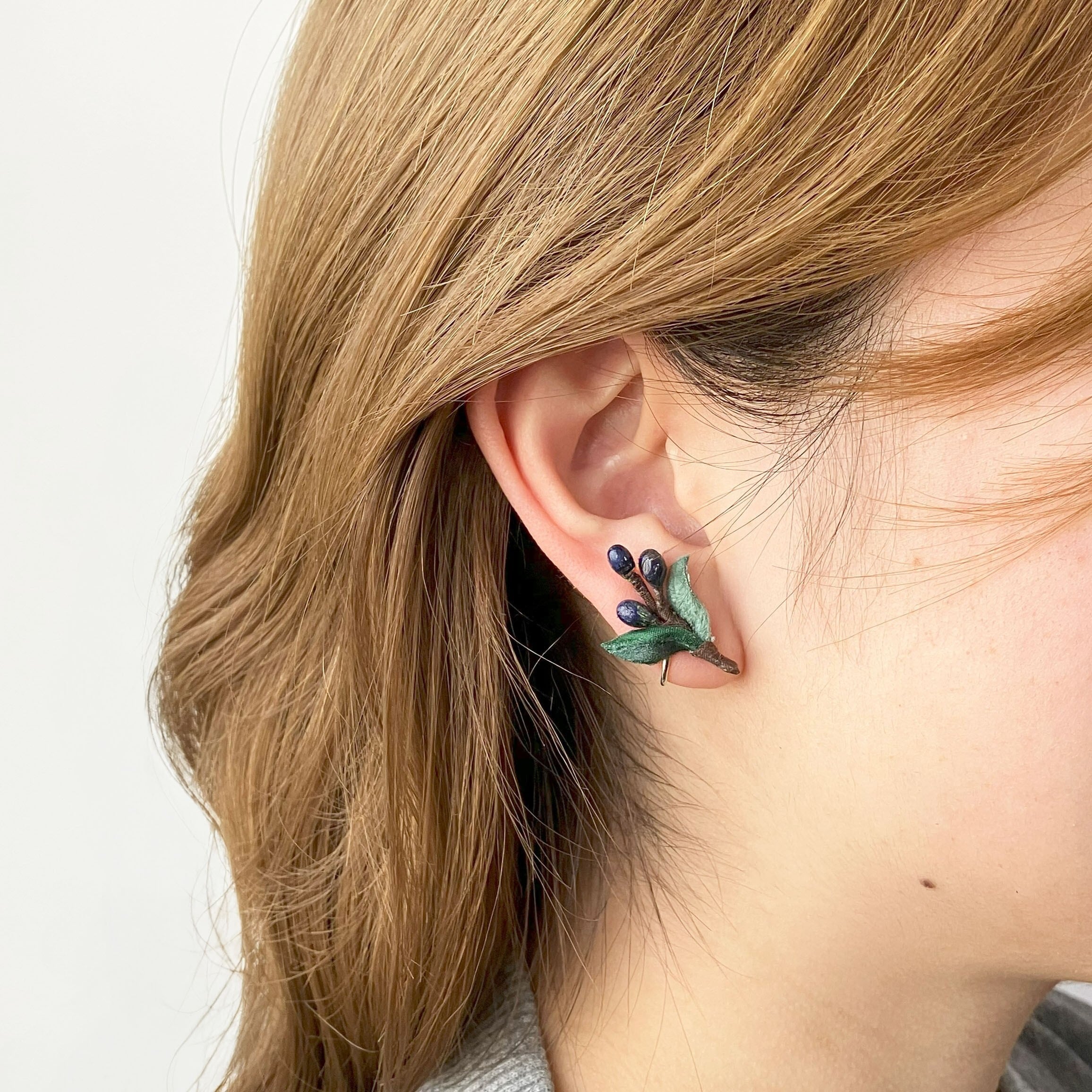 冬の風に揺れるタマツバキの実。シンプルになりがちな秋冬の装いも表情豊かにしてくれるアイテムです。耳元で小さく寄り添うイヤリング。