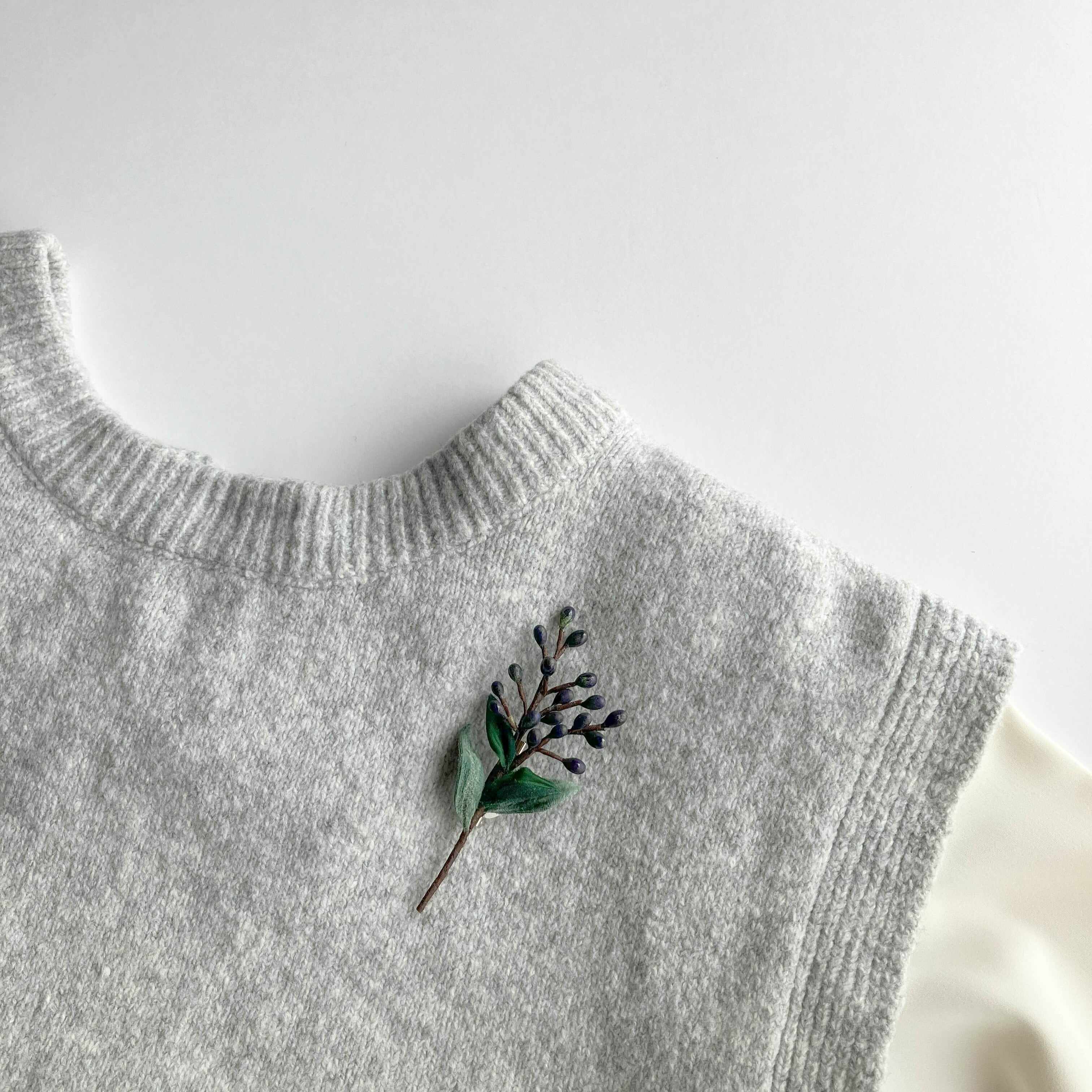 冬の風に揺れるタマツバキの実。シンプルになりがちな秋冬の装いも表情豊かにしてくれるアイテムです。
