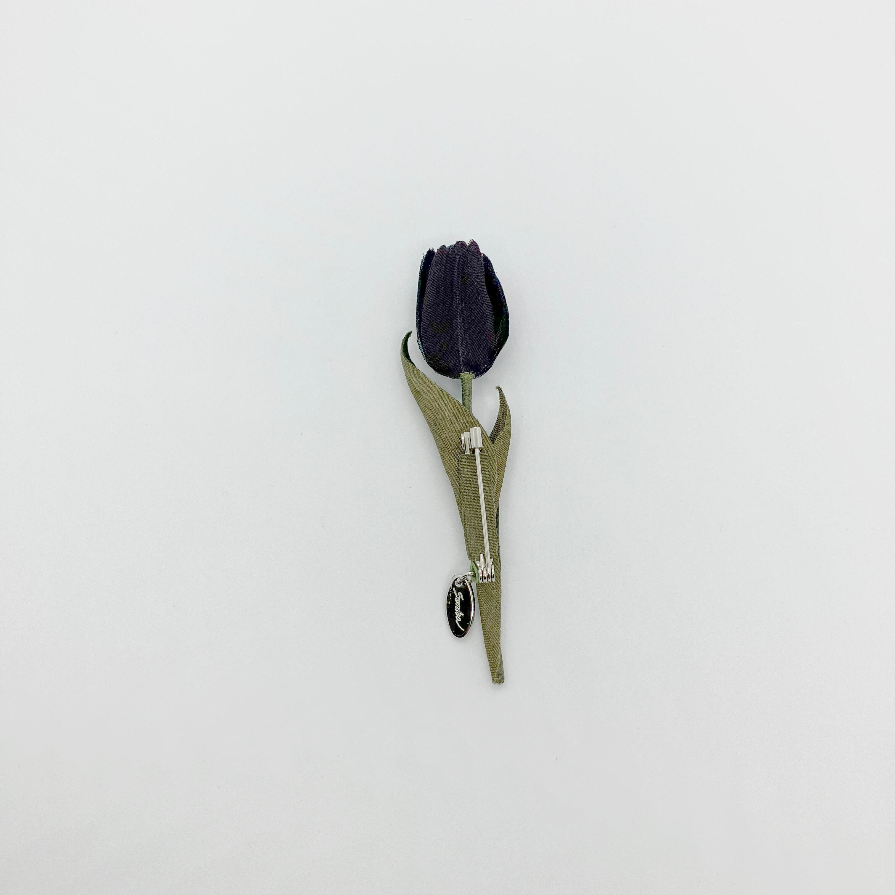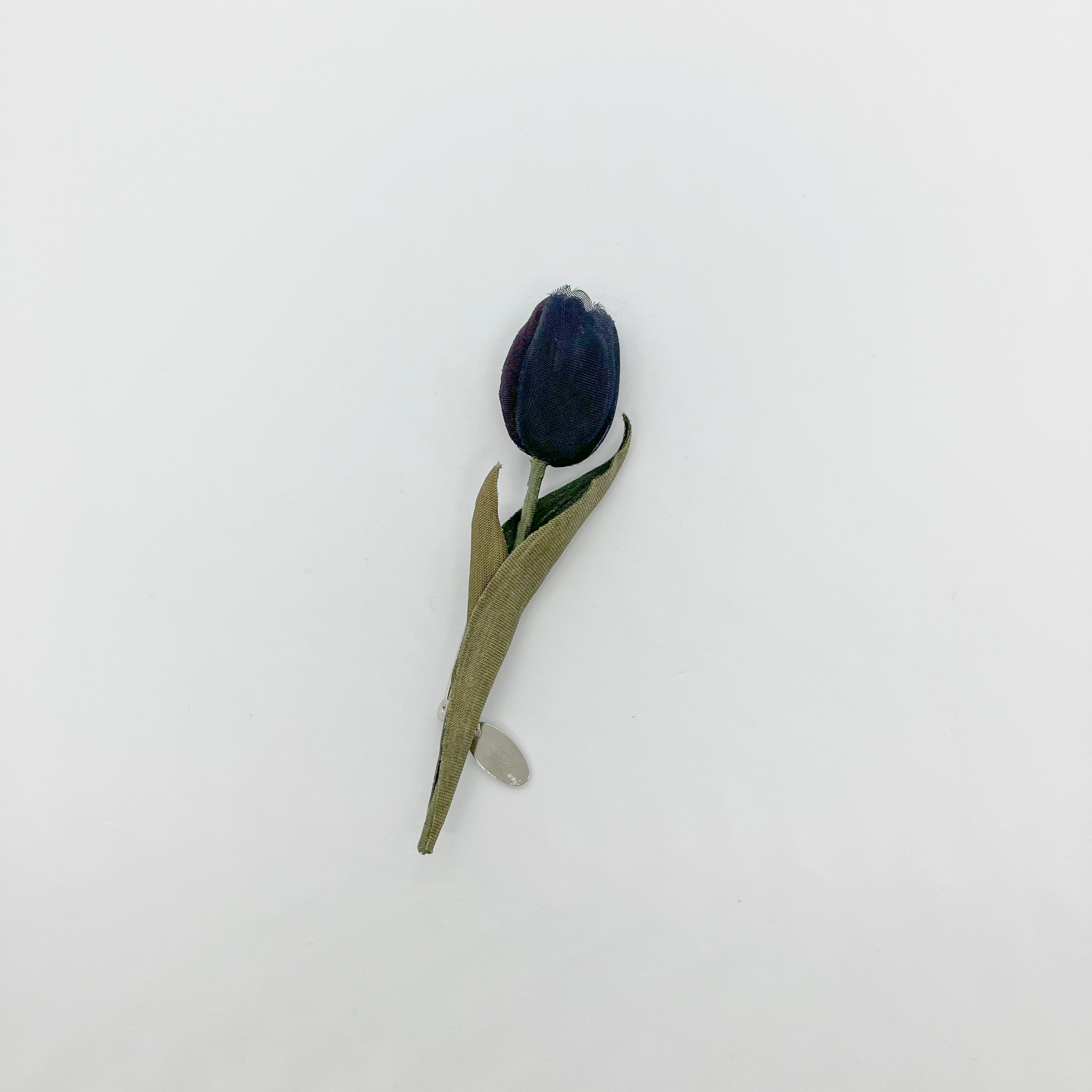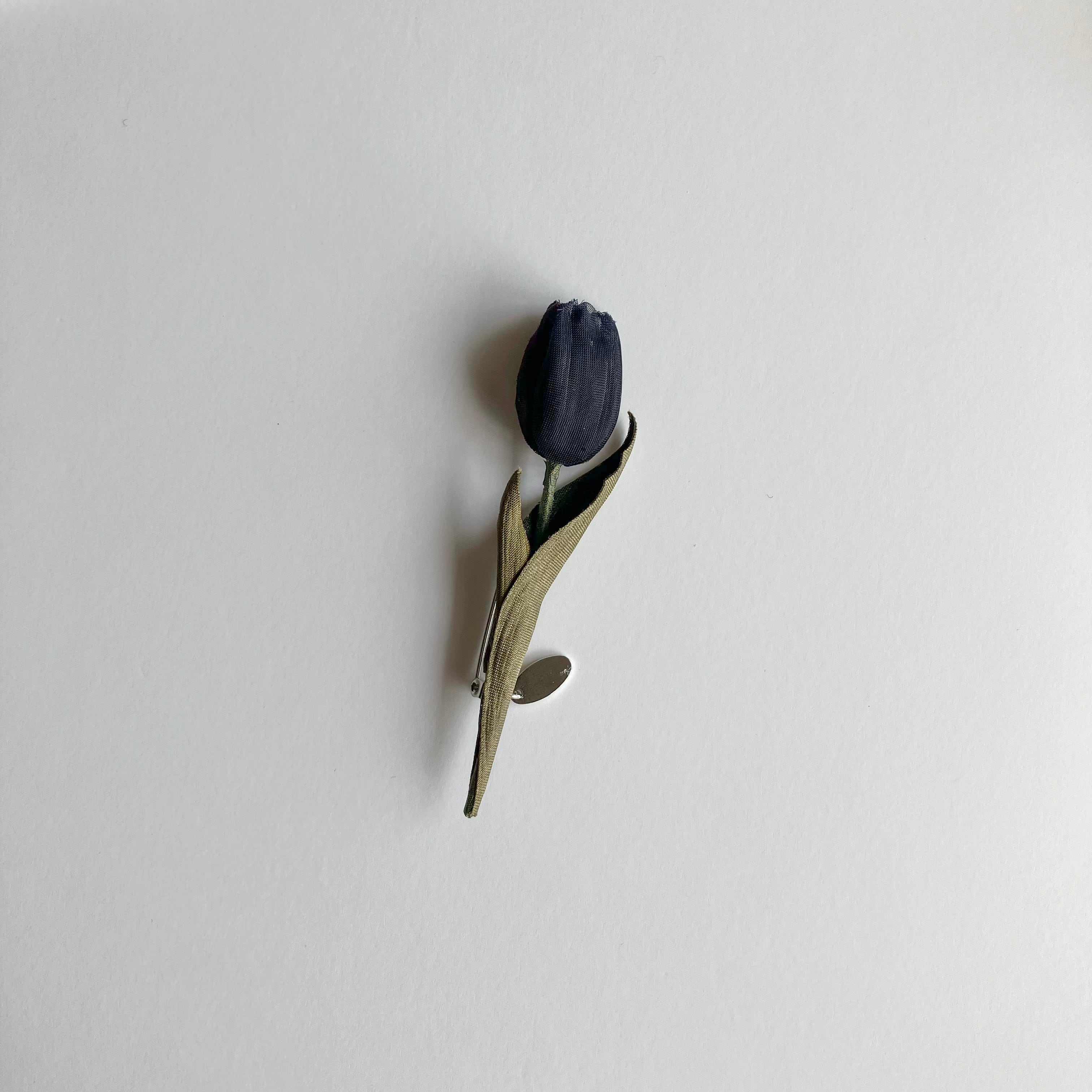 愛らしいイメージのチューリップを大人っぽく。奥行きを感じさせる素材・色づかい、リーフがみせるわずかな動き…シンプルだからこそ細部にまでこだわり抜いたブローチです。