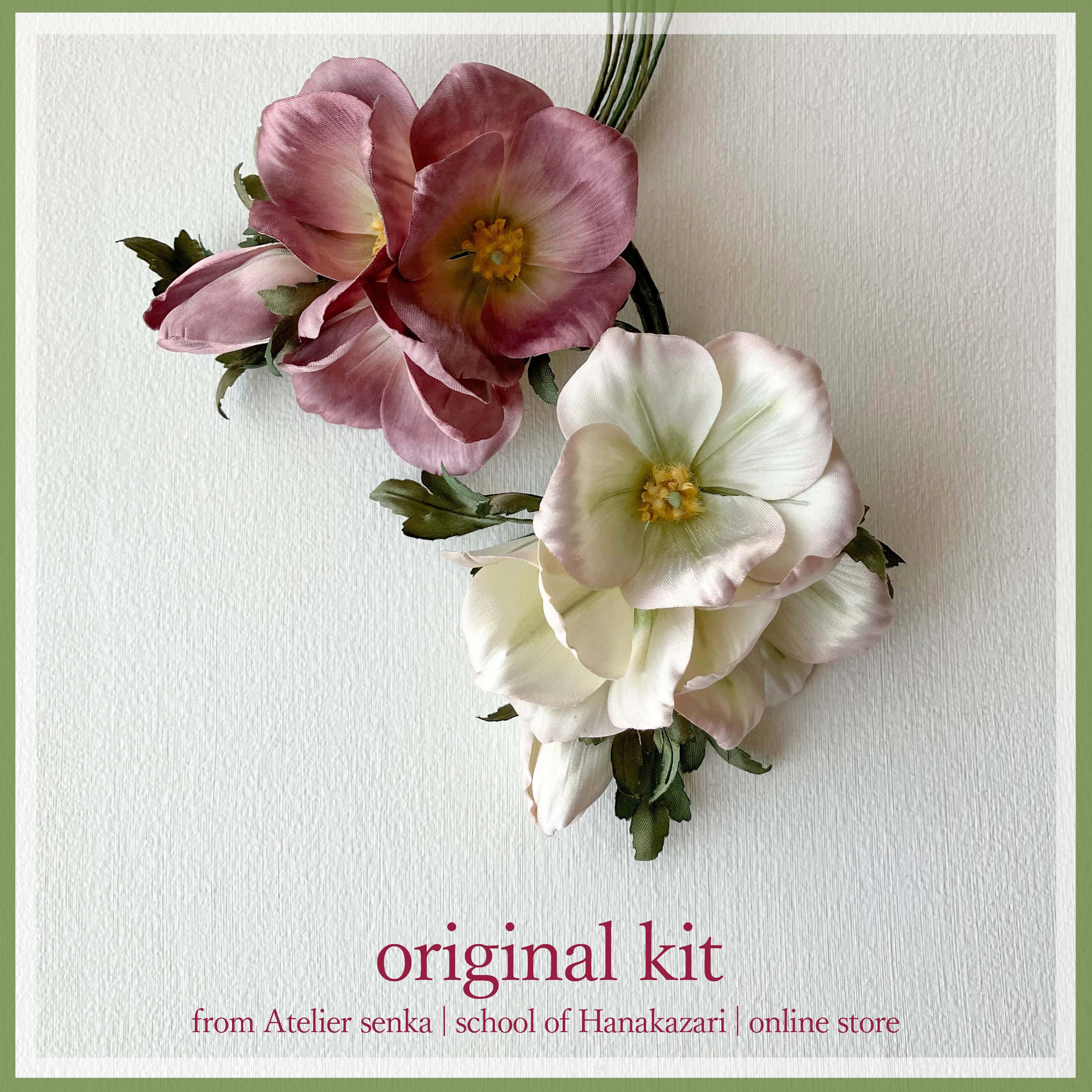 アトリエ染花花飾り教室が企画するオリジナルキットです。アトリエ染花独自の染色を施した材料と作り方をセットにしてご自宅にお届けいたします。ご自身のペースでお気軽に本格的なお花づくりをお楽しみください。