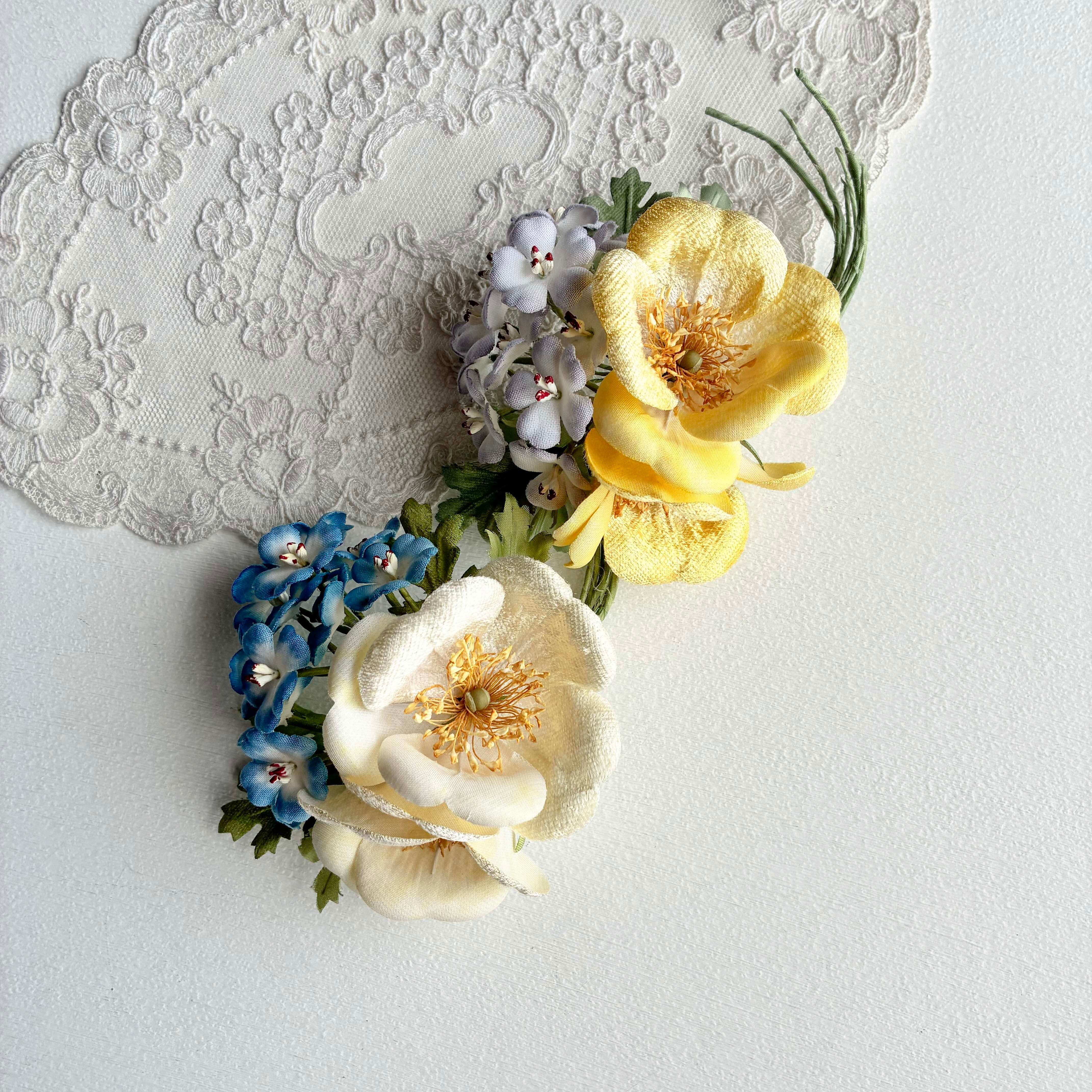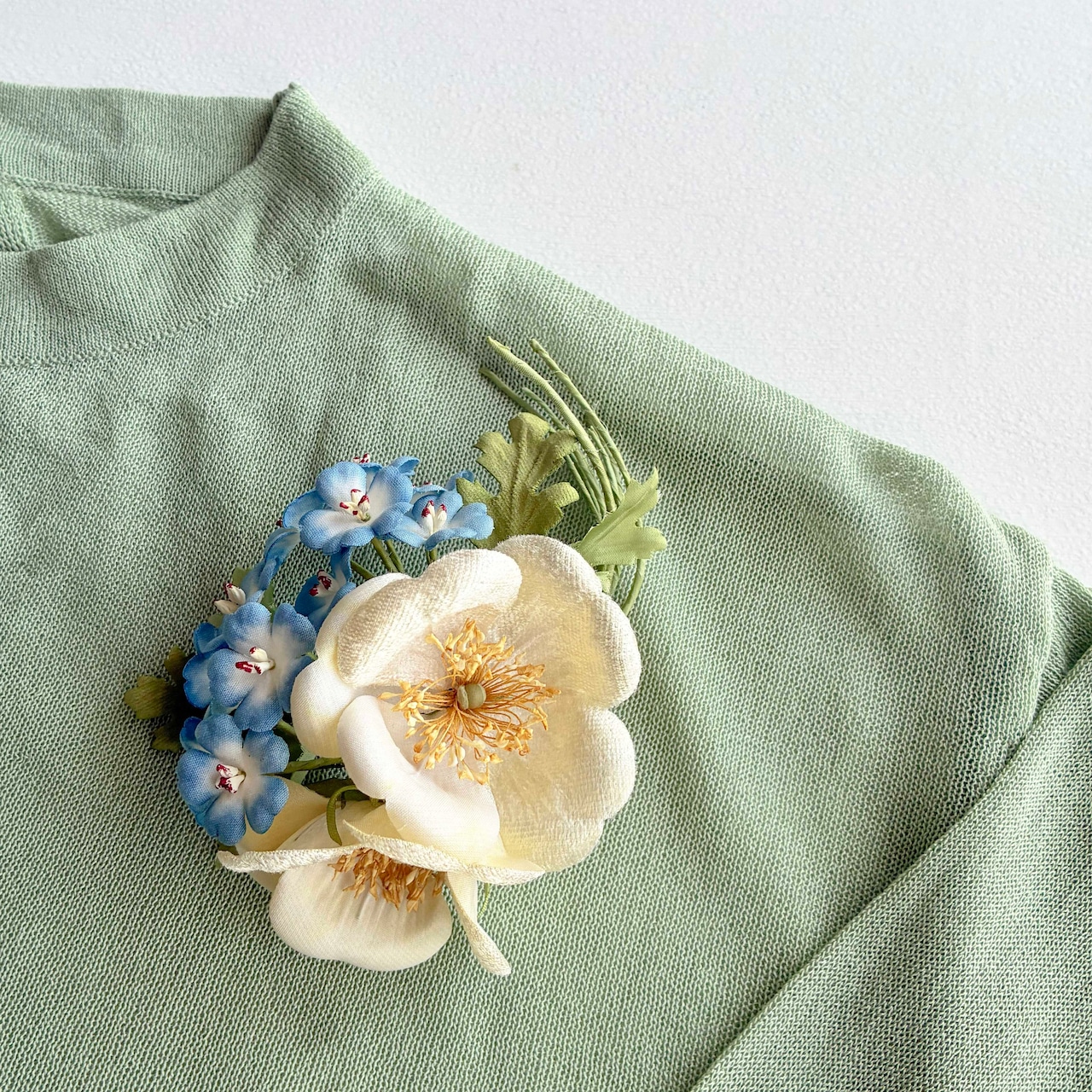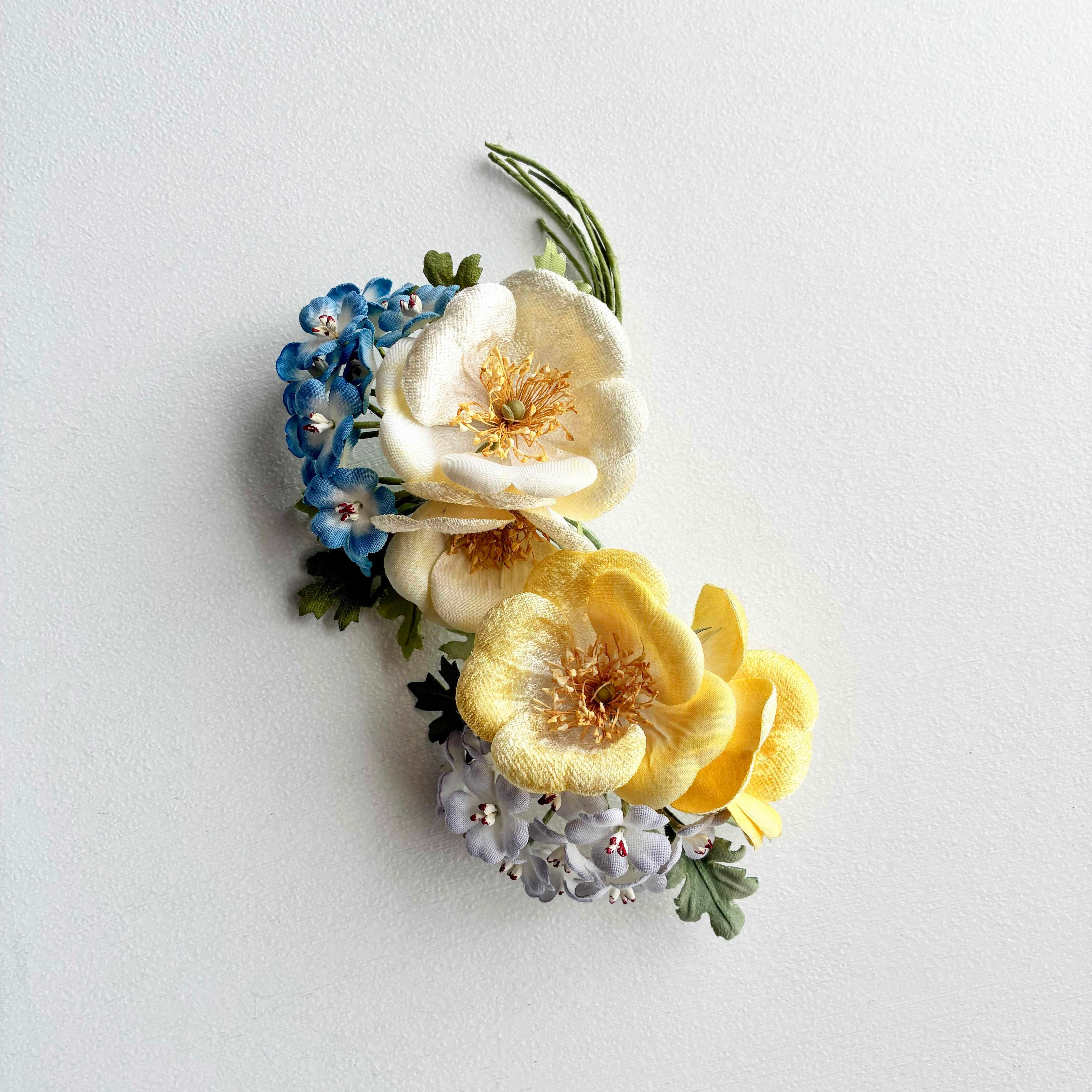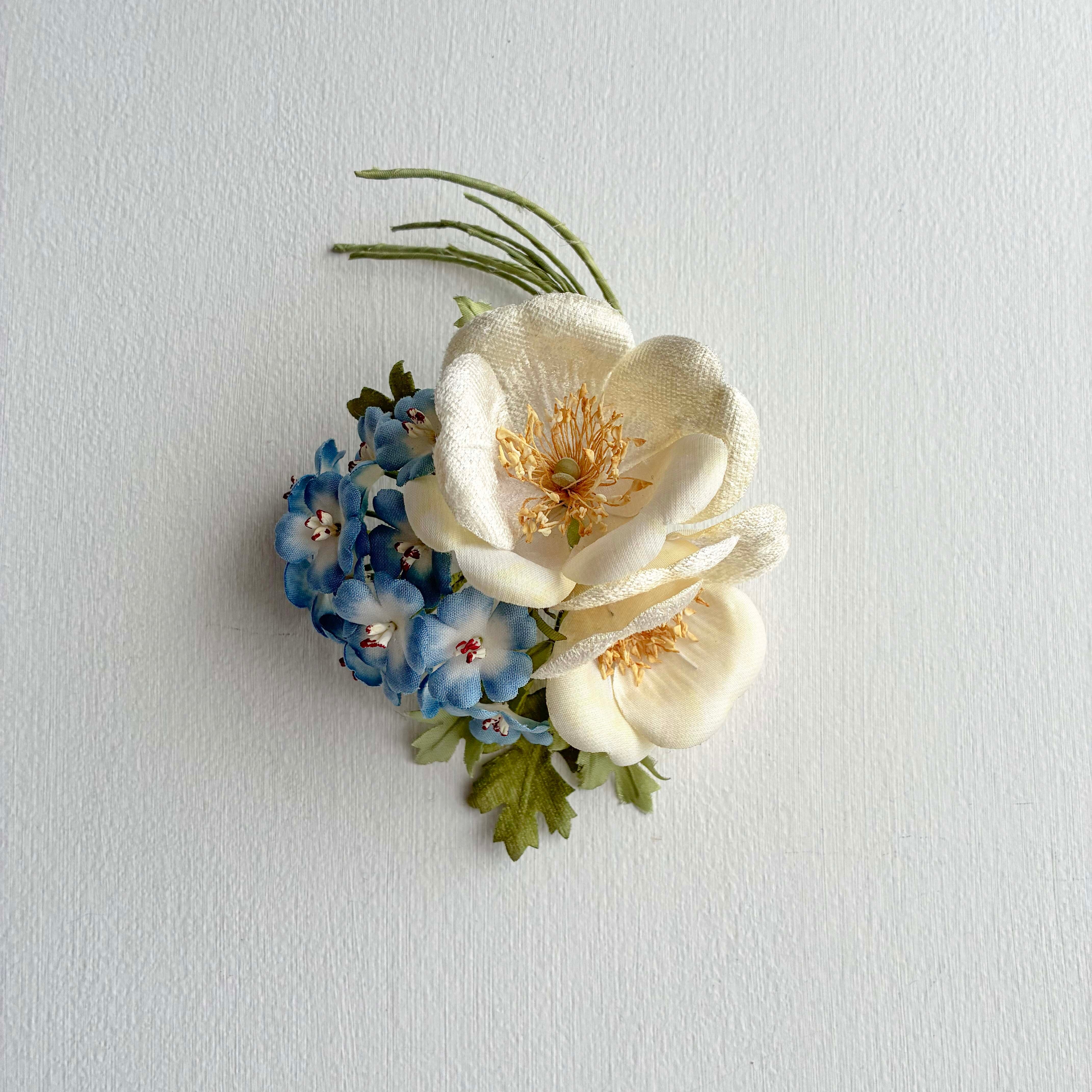 春の訪れを感じさせるネモフィラと野ばらのコサージュキット。ネモフィラの可憐さや野ばらのやさしい華やかさ…素材やコテを使い分けて生き生きとした表情の花飾りづくりをお楽しみいただけます。春ならではの色合いで、ブルー×オフとパープル×イエローの二色展開です。数量限定の販売となります。