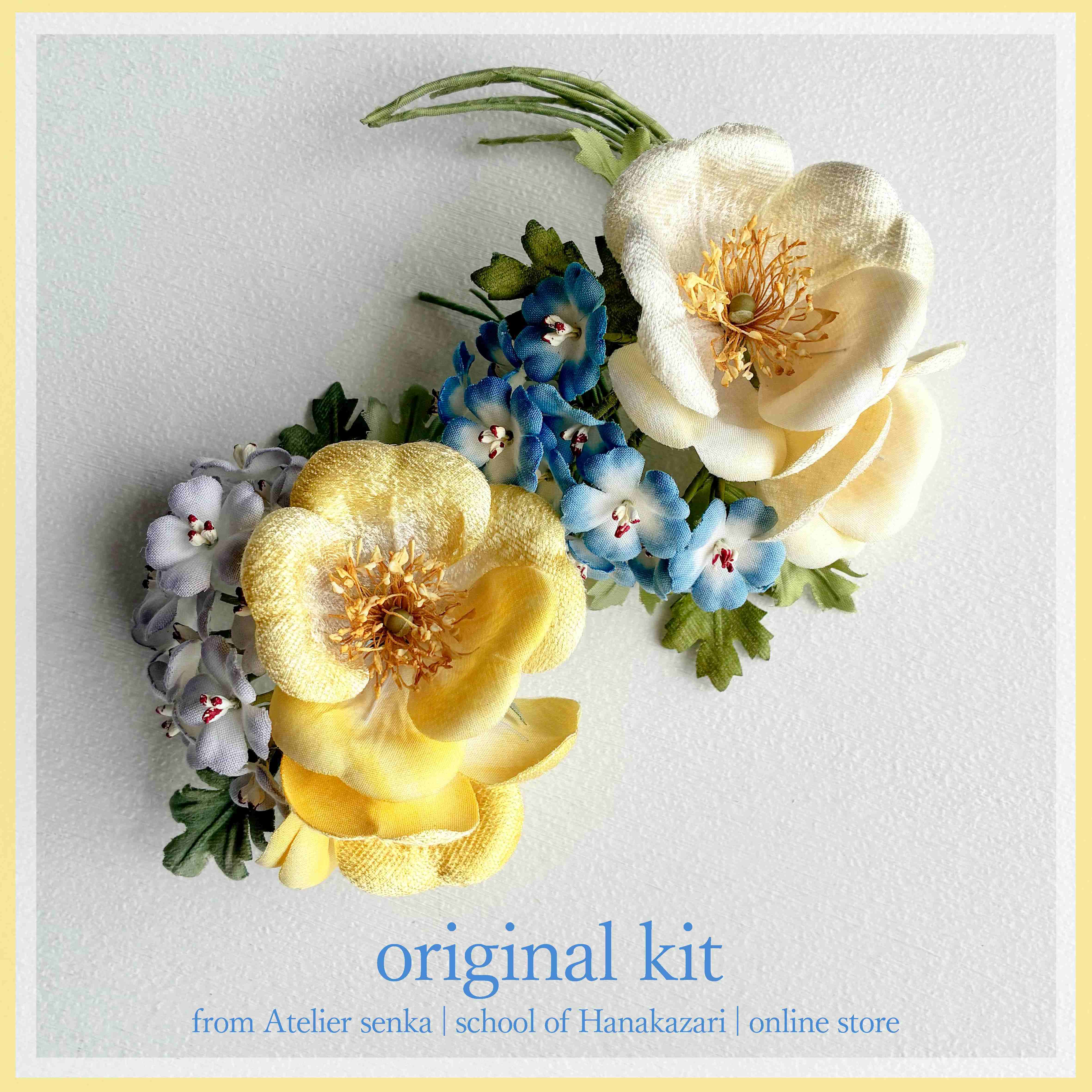 アトリエ染花花飾り教室が企画するオリジナルキットです。アトリエ染花独自の染色を施した材料と作り方をセットにしてご自宅にお届けいたします。ご自身のペースでお気軽に本格的なお花づくりをお楽しみください。
