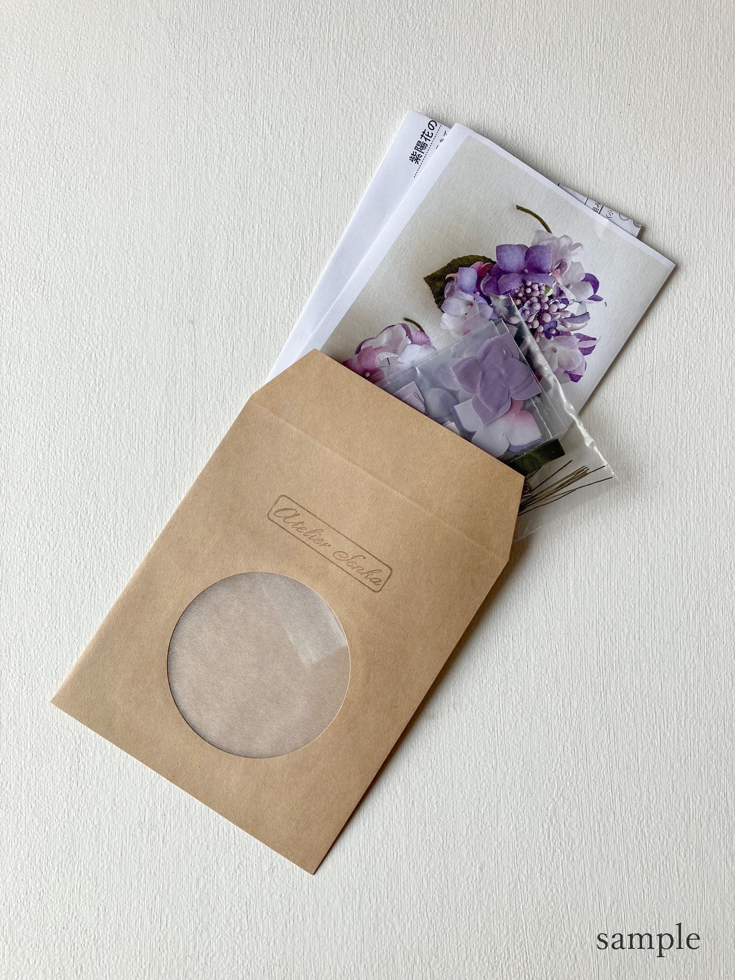 全ての材料と作り方のセットを専用の封筒に入れてお届けいたします。(写真8枚目はサンプルのため実際の内容とは異なります。)