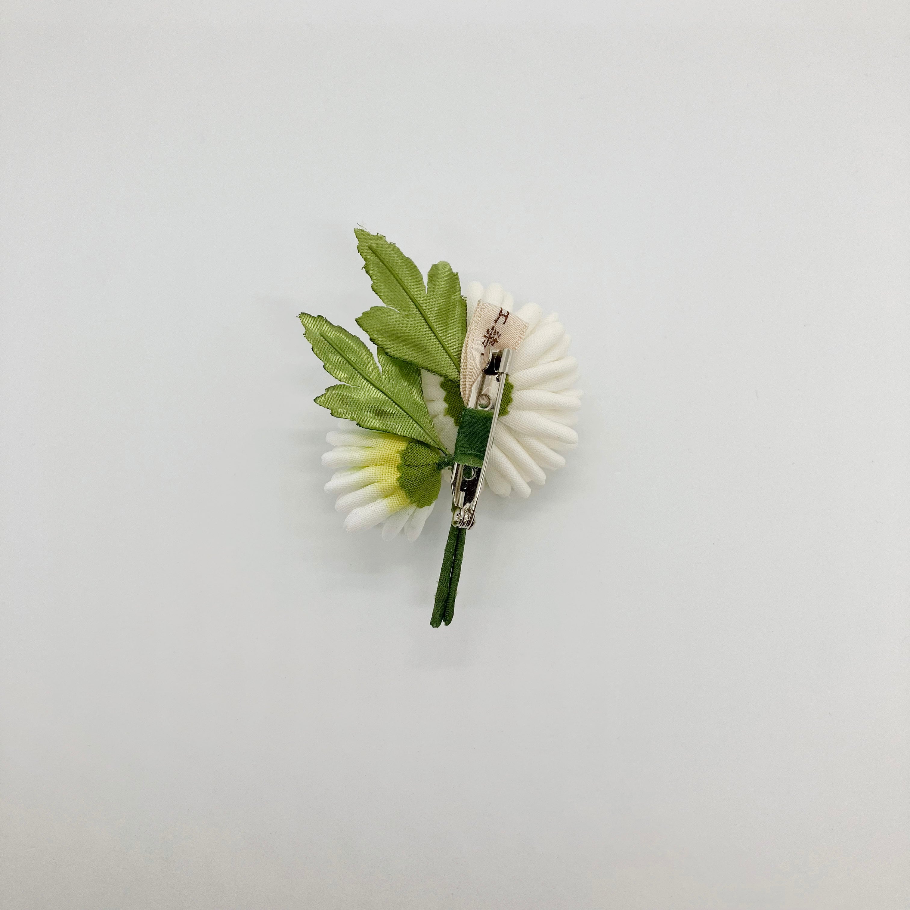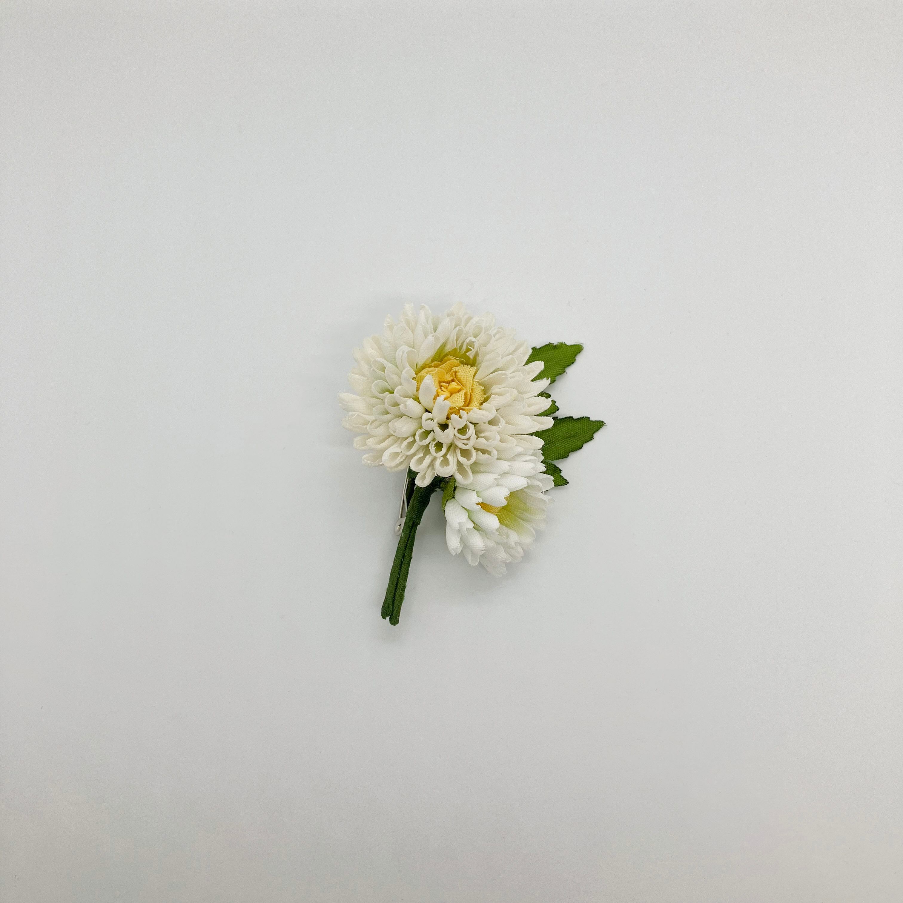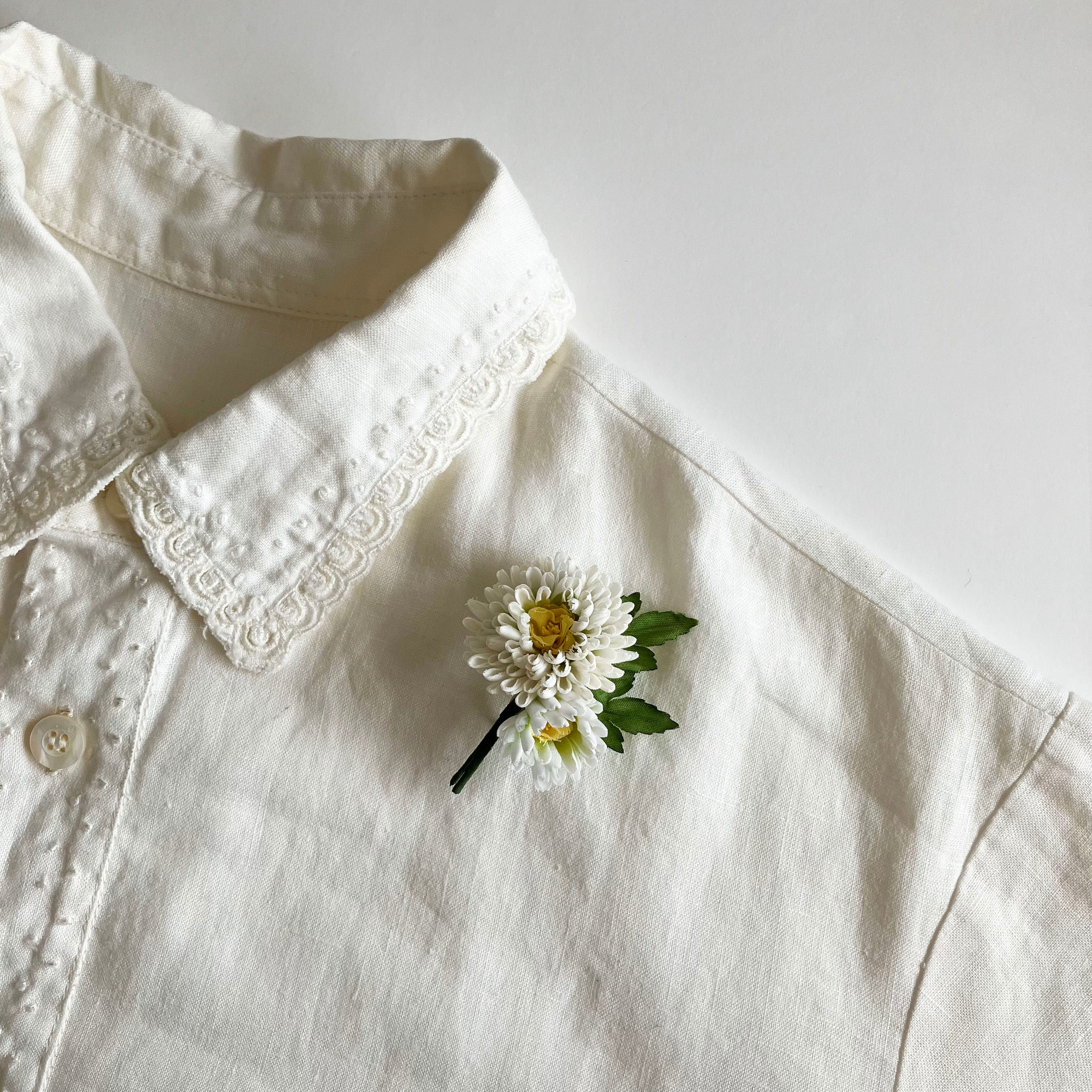 片手のひらに収まるほど小ぶりなデイジーのブローチ。どの角度から見てもデイジー特有の丸みがしっかりと。小さいながらにもこだわりをぎゅっと詰め込んで。