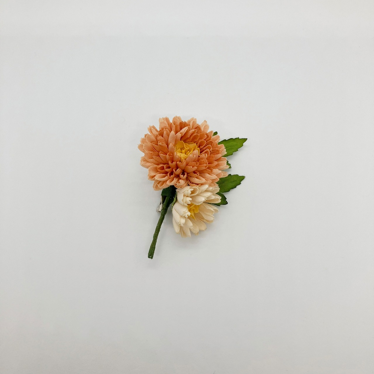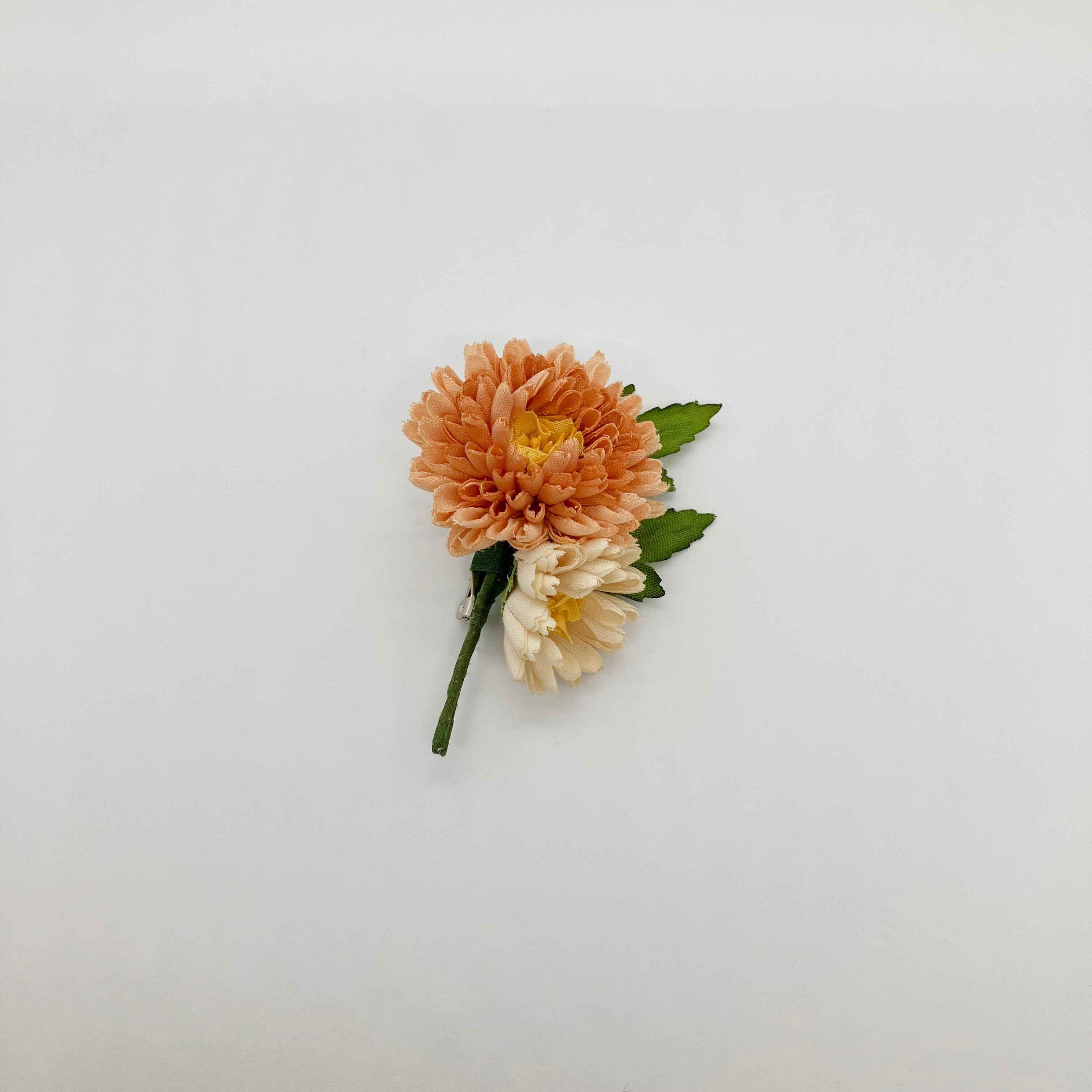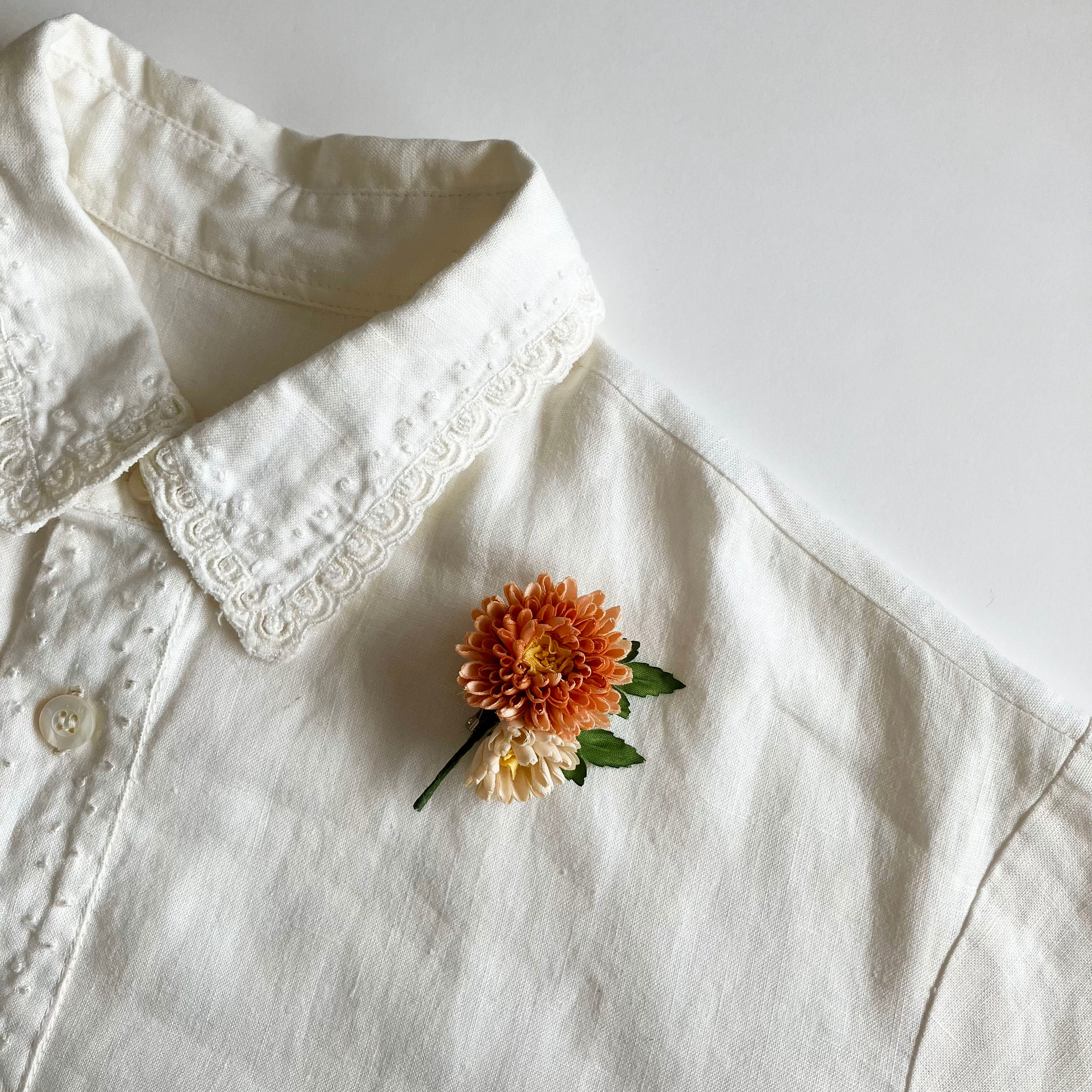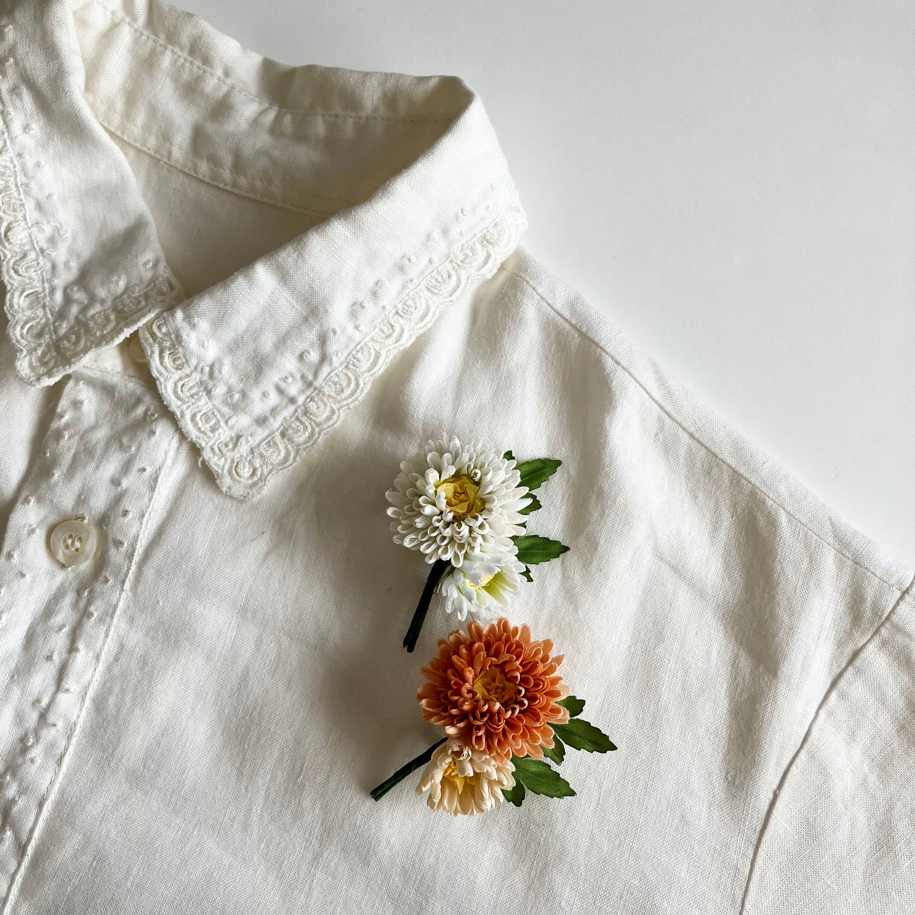 片手のひらに収まるほど小ぶりなデイジーのブローチ。どの角度から見てもデイジー特有の丸みがしっかりと。小さいながらにもこだわりをぎゅっと詰め込んで。