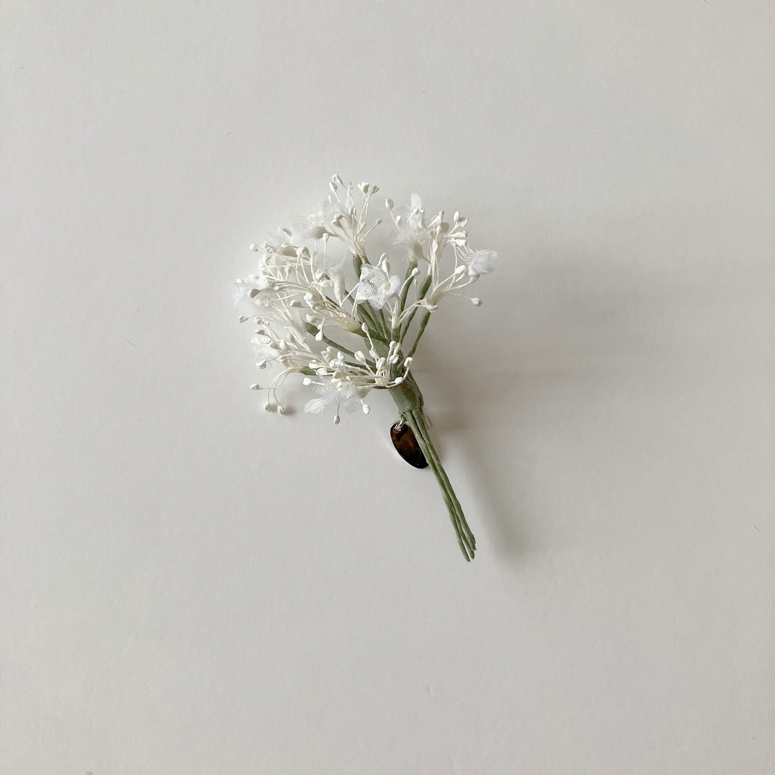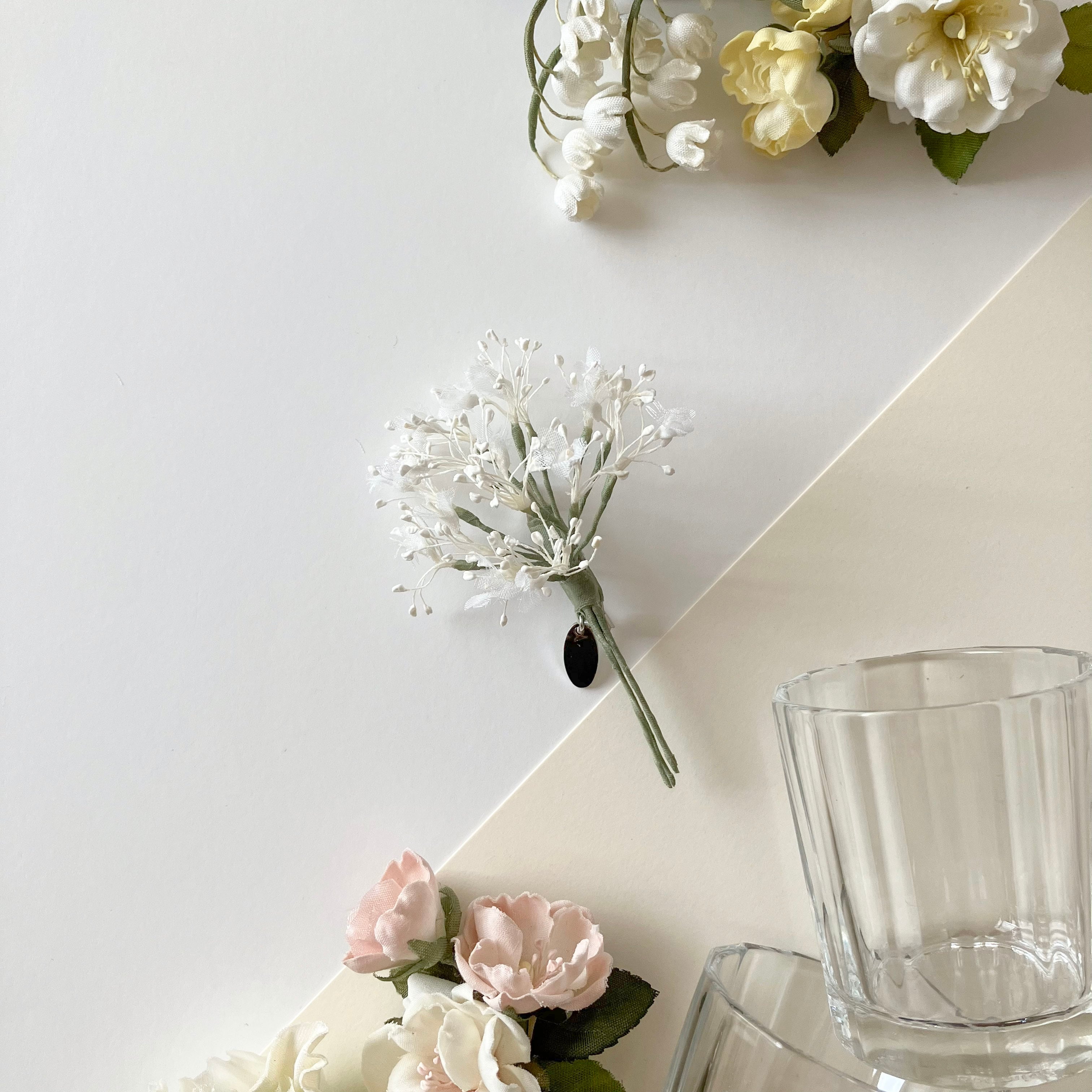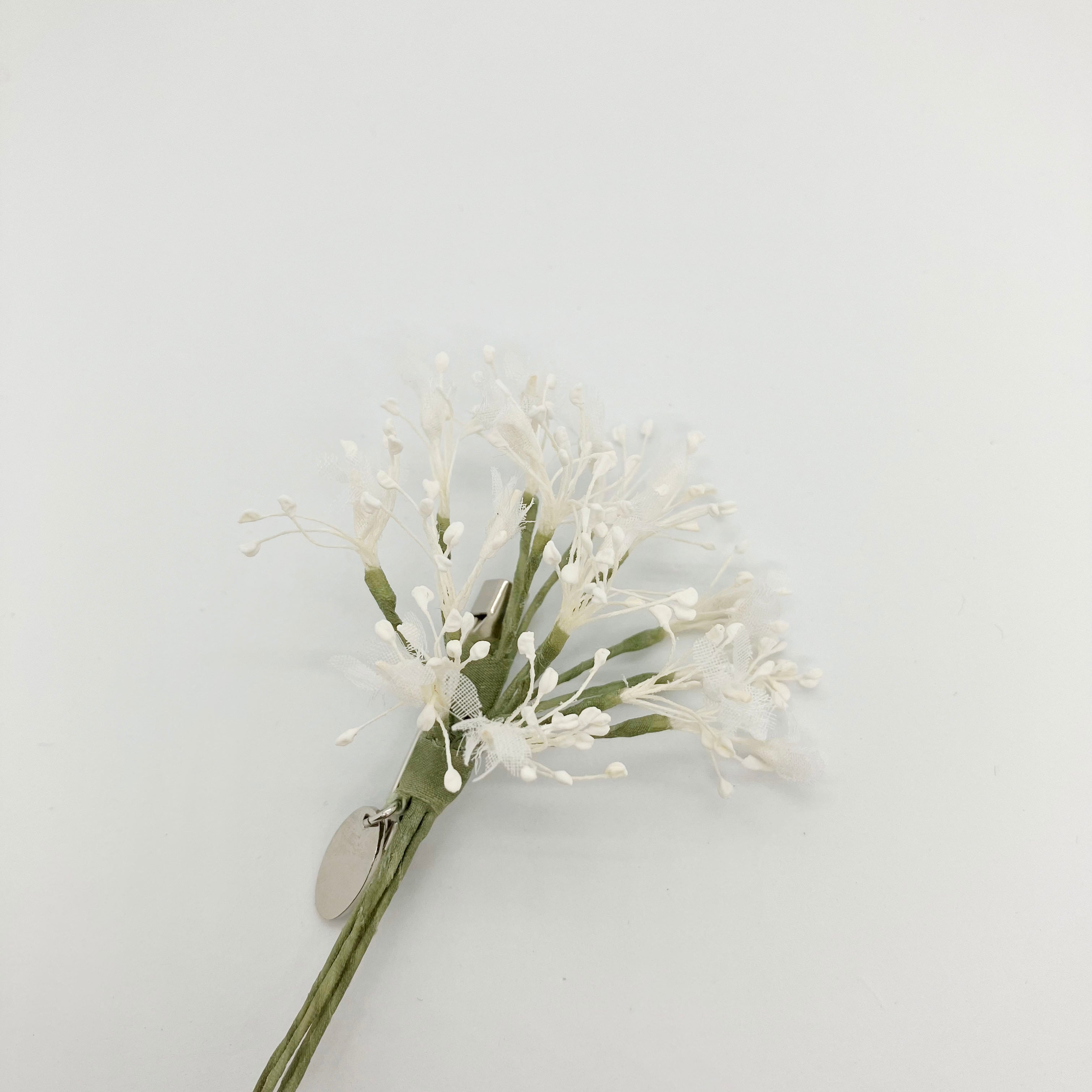儚げで繊細なカスミソウの特徴をしっかりととらえたコサージュはどんな装いとも相性