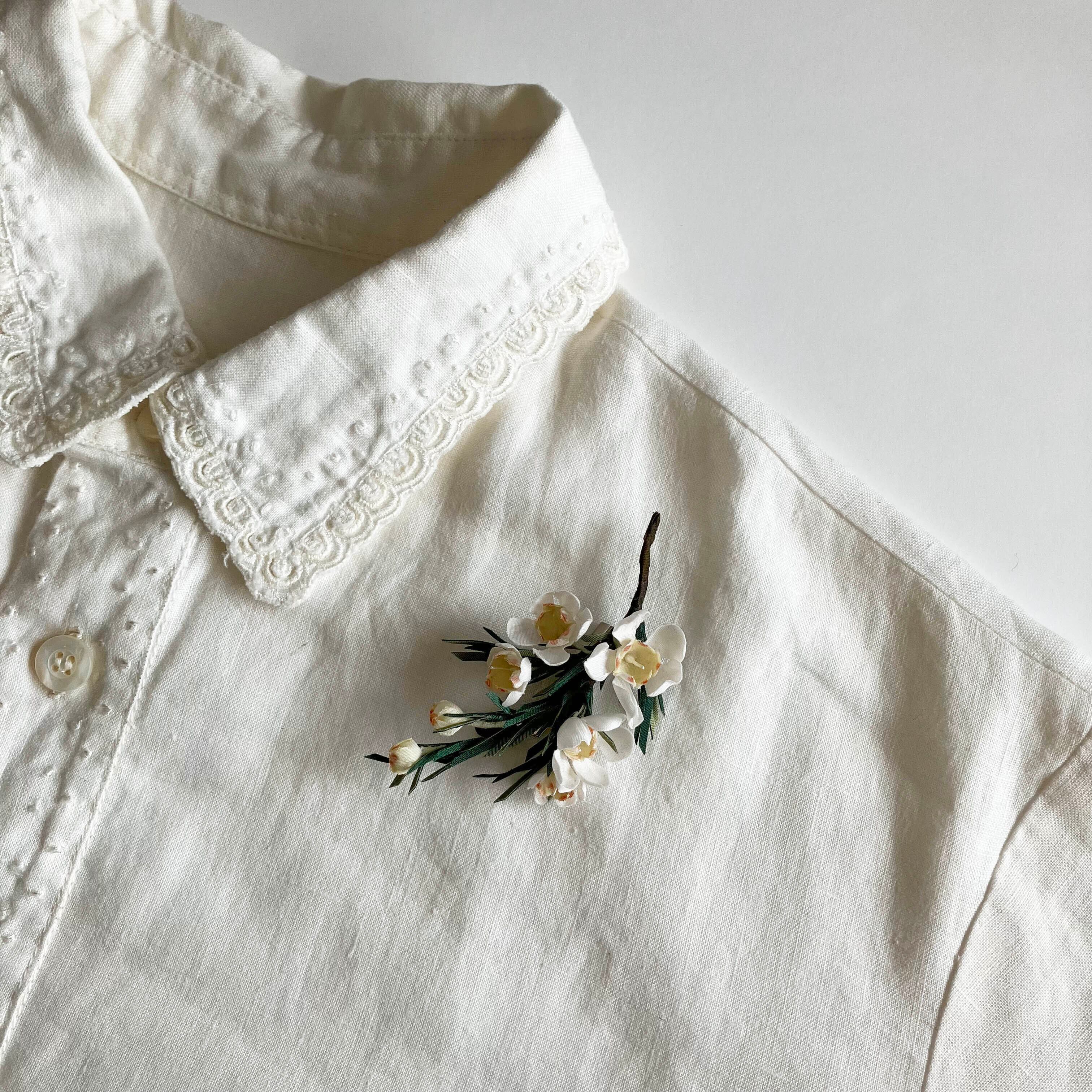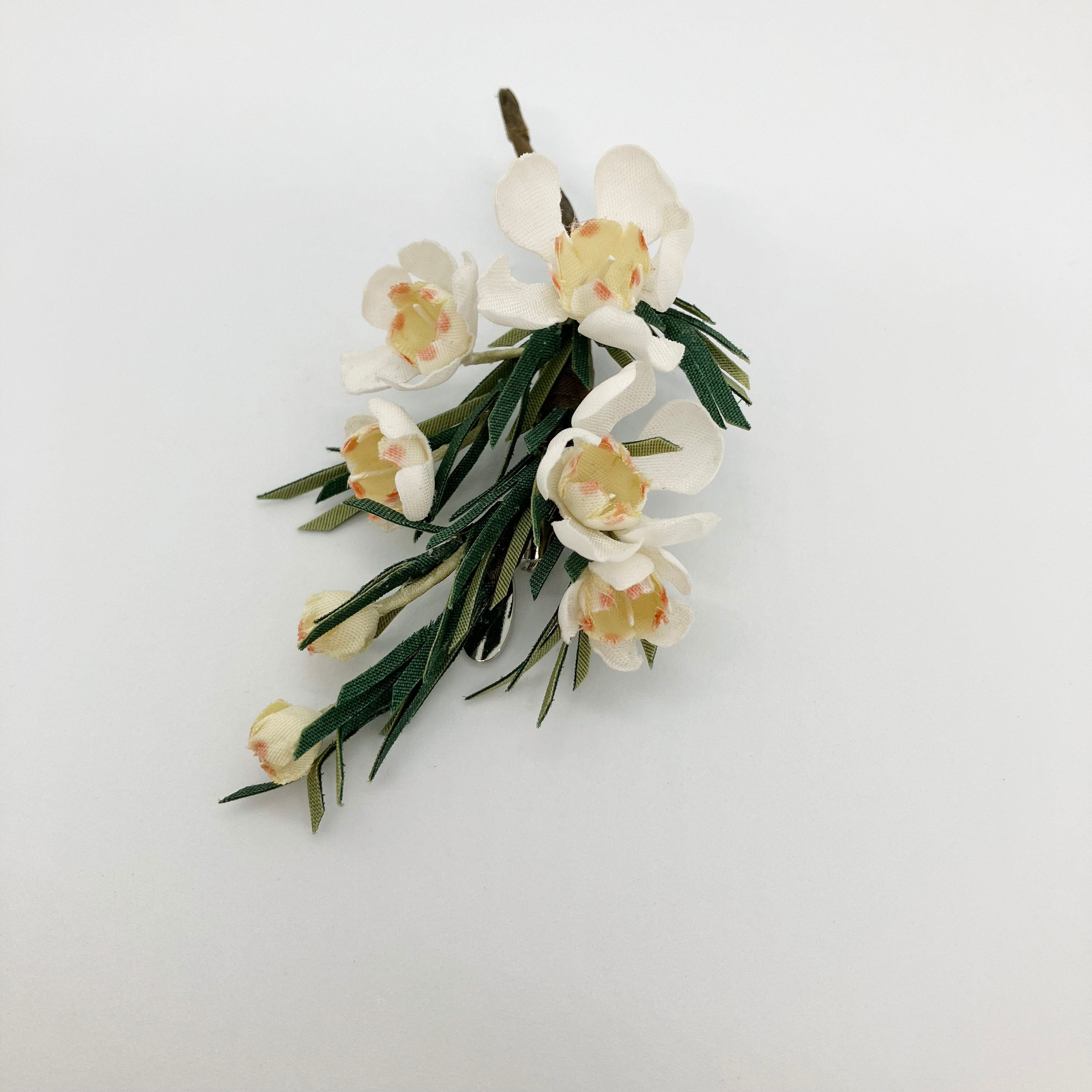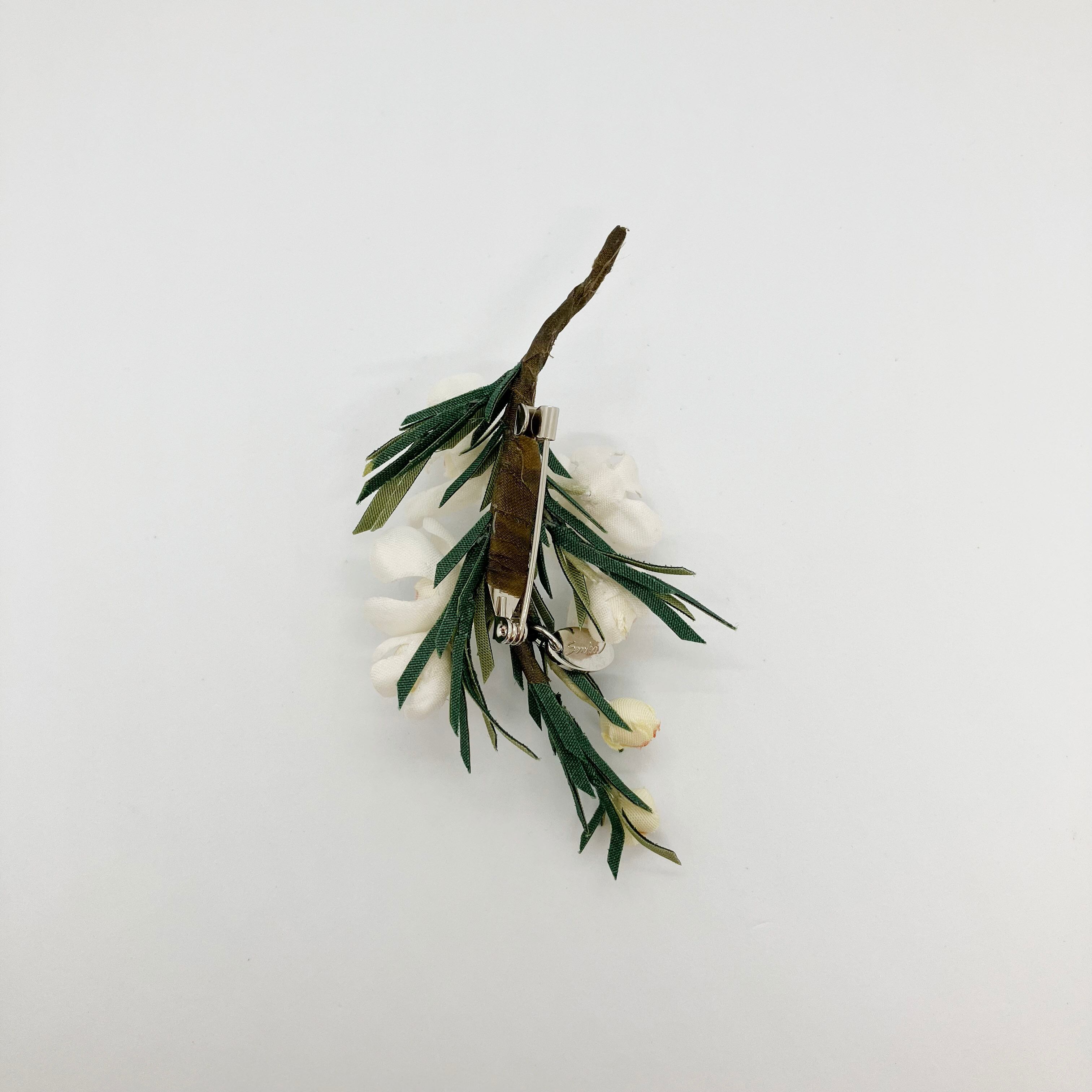 丸いフォルムの愛らしい花とシャープな針葉のバランスが可愛いワックスフラワー。爽やかなグリーンに白い花が映え、シャツやブラウススタイルも涼しげに。