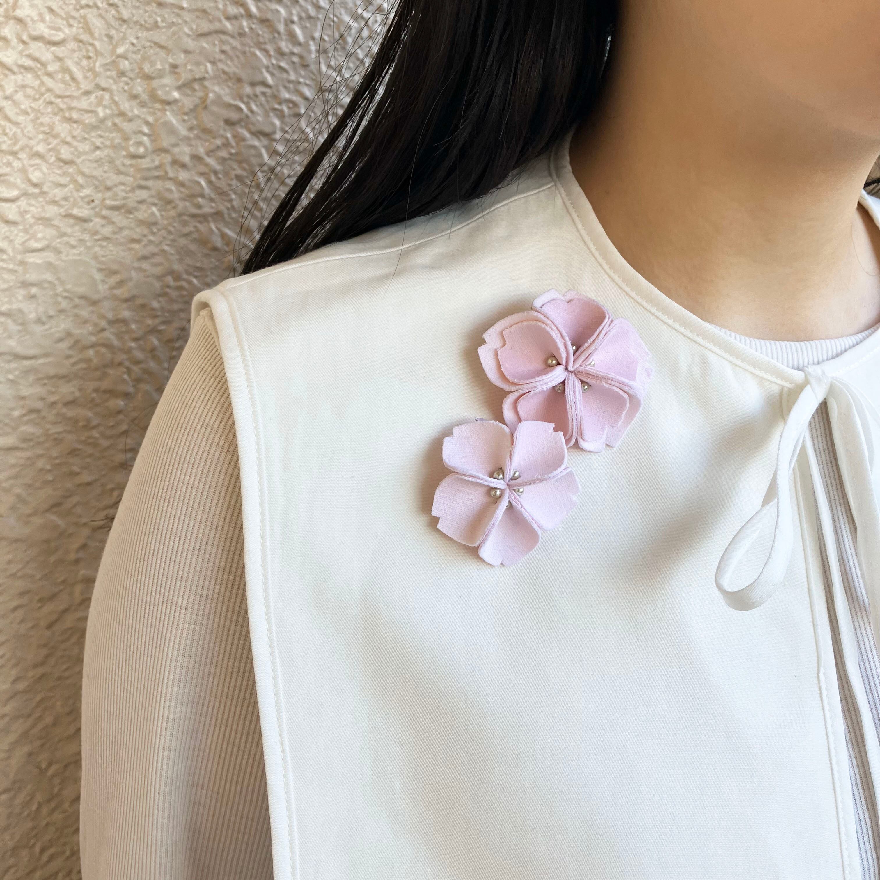 桜らしいフォルムを残しつつも華々しさを抑えて使いやすさを重視したブローチ。程よいデフォルメ感と豊富な色数で桜に固執せずとも様々なシーンで気軽に取り入れられる親しみやすいアイテムです。