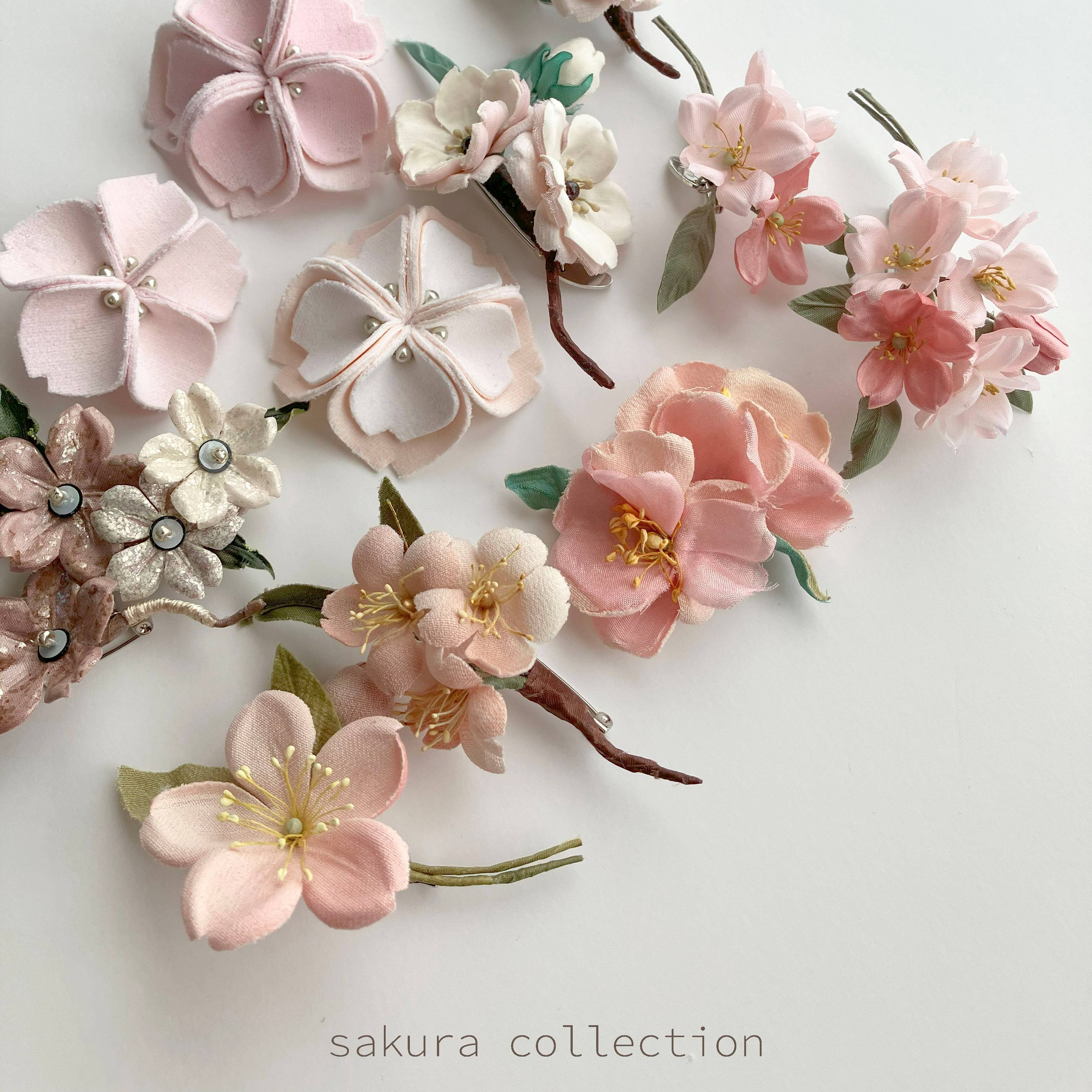 満開の桜は見る人の心を打つほどに風情があり、日本の美しい風景そのもの。情緒にあふれ、奥ゆかしさのある桜をモードに捉え、日常のファッションに溶け込む花飾りへと落とし込みました。
