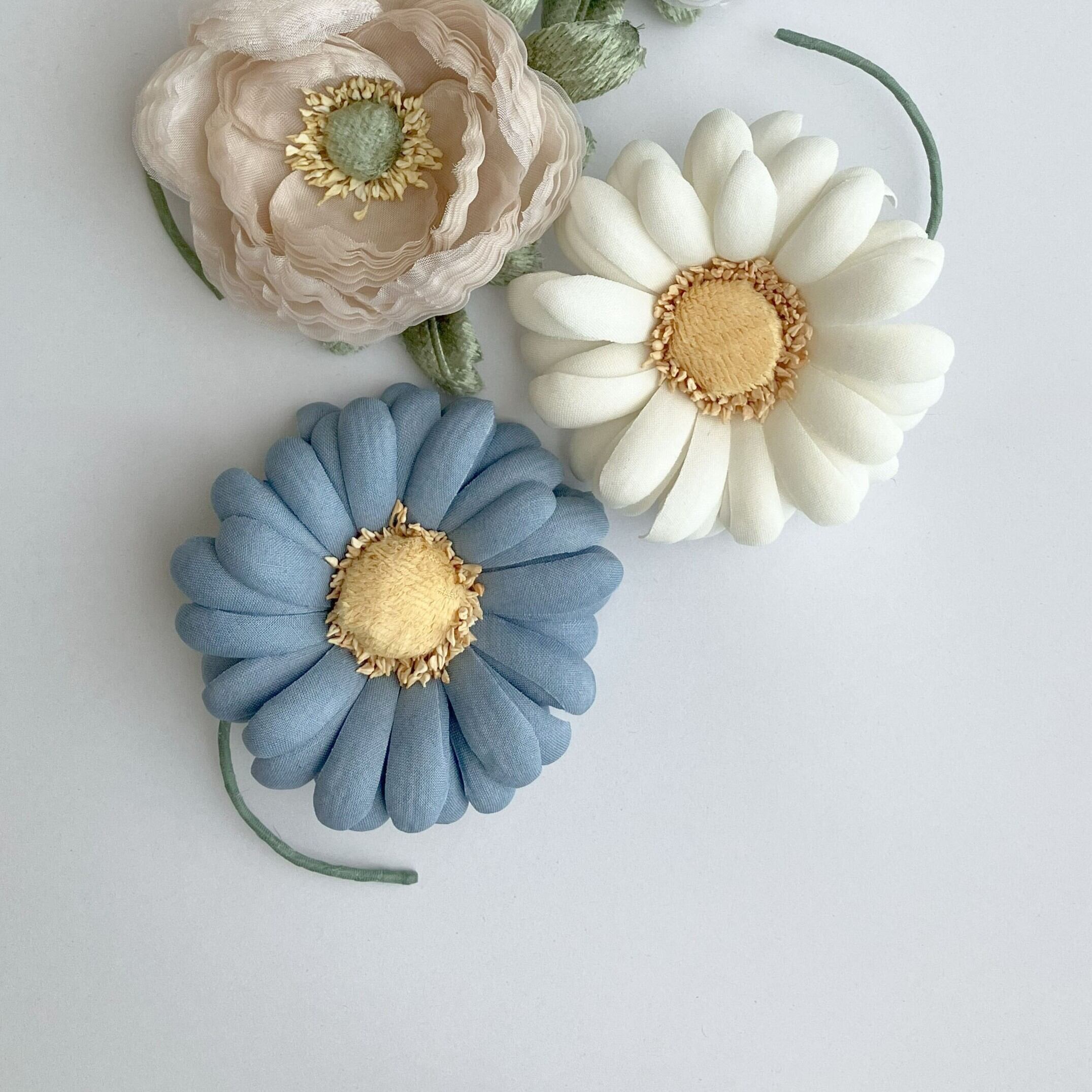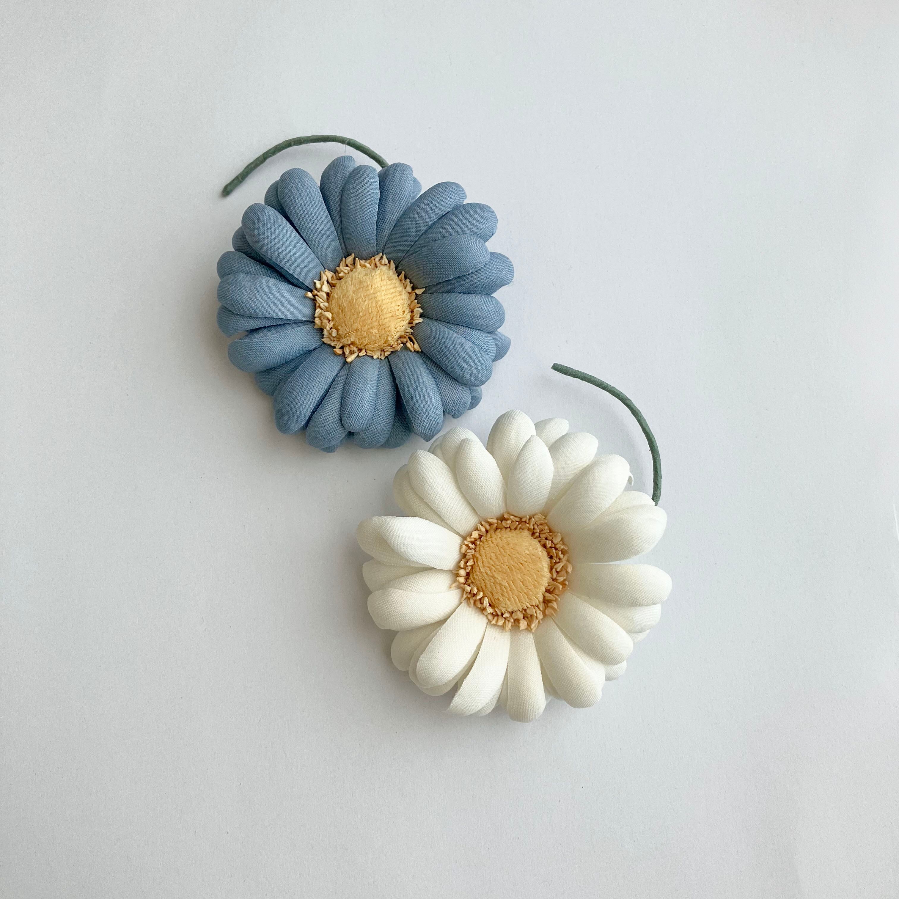 アトリエ染花が長きにわたり作り続けてきた定番アイテムに、新色が加わりました。マーガレットの愛らしさはそのままに、ほんのりミルキーなやわらかさのある乳白と少しくすみのある大人っぽいグレイッシュブルーの二色です。